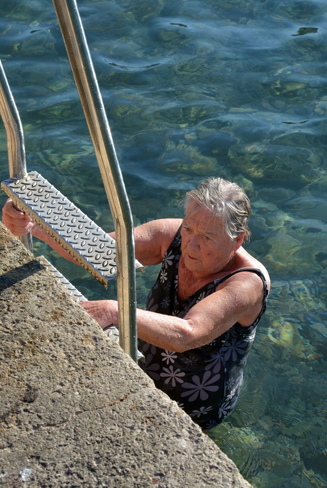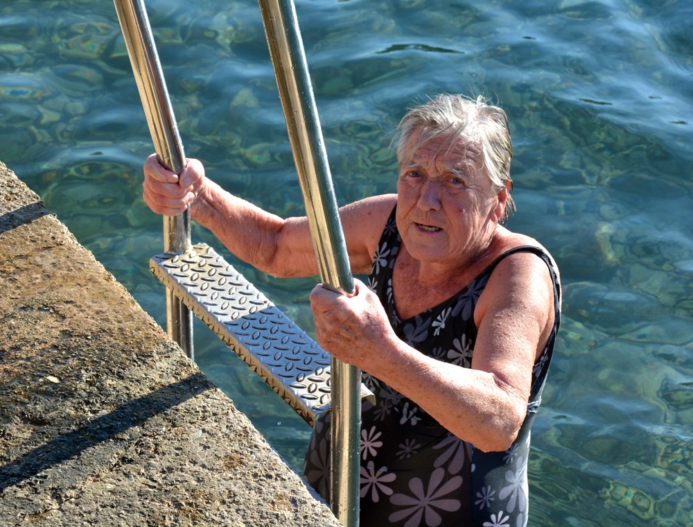 - Naravno da sam i ja tu, more bi se osušilo da me nema, našalila se Alma. Kupa se u moru tijekom cijele godine od 1990. godine. Priča nam da se i dalje, iako je sada smještena u domu za starije, kupa svakodnevno i to joj, tvrdi nam, sigurno odgovara zdravlju.
