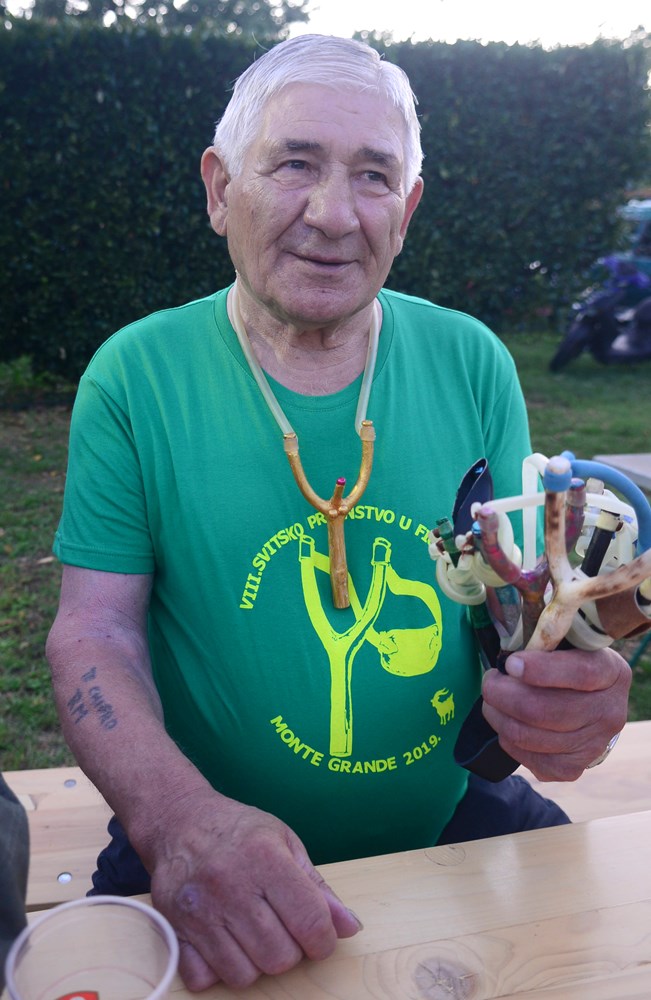 - Ovu fjondu mi je poklonio pokojni velemajstor Romualdo Cressina zvani Zio, koji je bio 6. svitski prvak. On je fjonde sam vrlo vješto izrađivao i svaki dan je vježbao gađati s balkona, a na natjecanju je znao skinuti po četiri, pet boca, što nikad nikom drugom nije pošlo za rukom. Ma ljudi misle da je to lako, jer smo se svi nekada igrali s praćkama, ali sada vide da to nije baš tako. Znaš kako je jedan bio dobro to komentirao? Čo moj, kad smo bili klinci si moga s praćkami skinut kutiju šibica sa zida, a sad ne moren pogoditi tu veliku bocu. Eko. To je vještina koju treba vježbati kao i sve drugo, kaže Lanca.