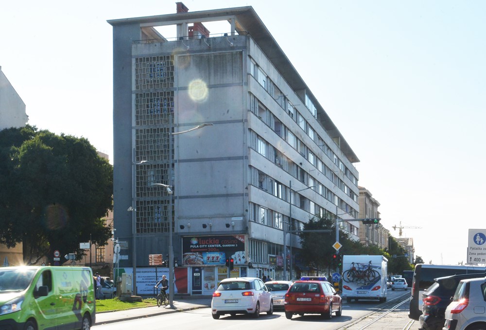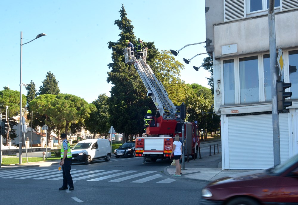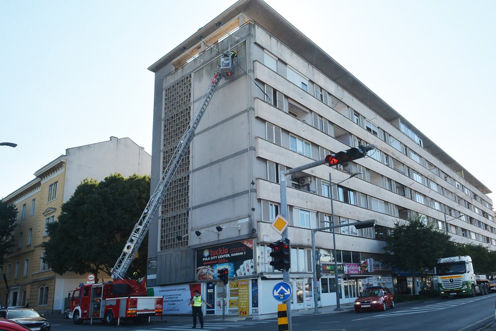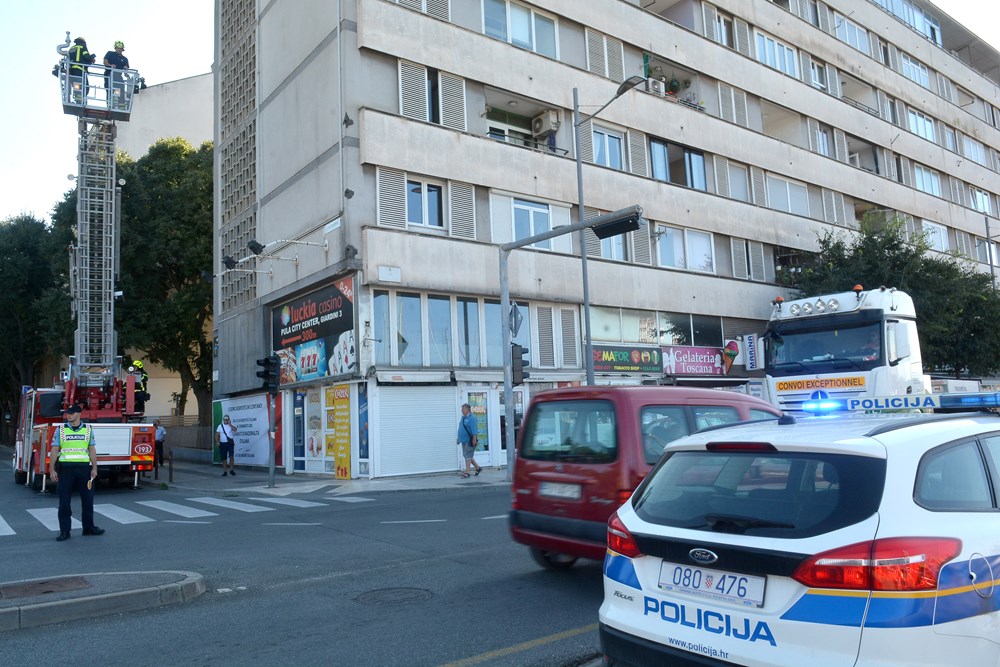 Na pulskoj rivi, negdje oko 14 sati, sa zgrade u blizini Titovog parka odvalio se okromni plakat zbog čega je privremeno bilo zatvoreno i obližnje križanje.