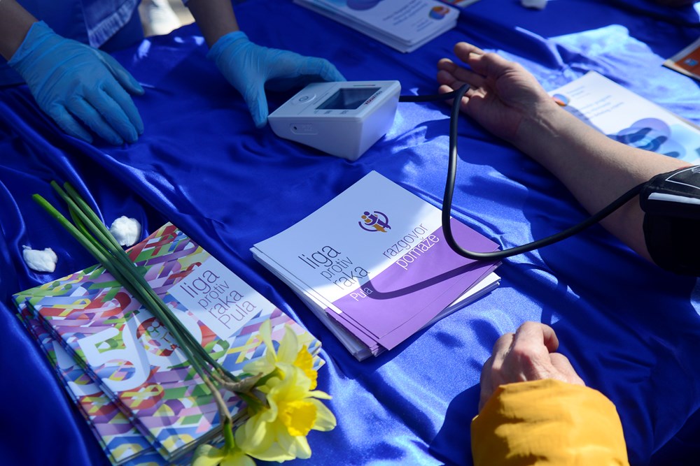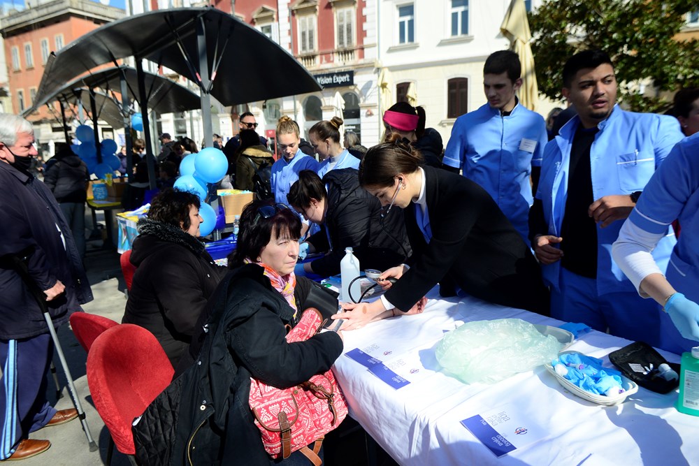 Akciji koju su organizirali Članovi Lige za borbu protiv raka pomogla je i sunčana subota koja je privukla veliki broj građana koji su iskoristili i provjerili krvi tlak uz pomoć učenika Medicinske škole koji su sudjelovali u akciji. Istovremeno su učenici Osnovne škole Kaštanjer prolaznicima dijeliti plave cvjetove s porukom izrađenom od papira, uz mogućnost simboličnih donacija građana koji su se rado odazvali.