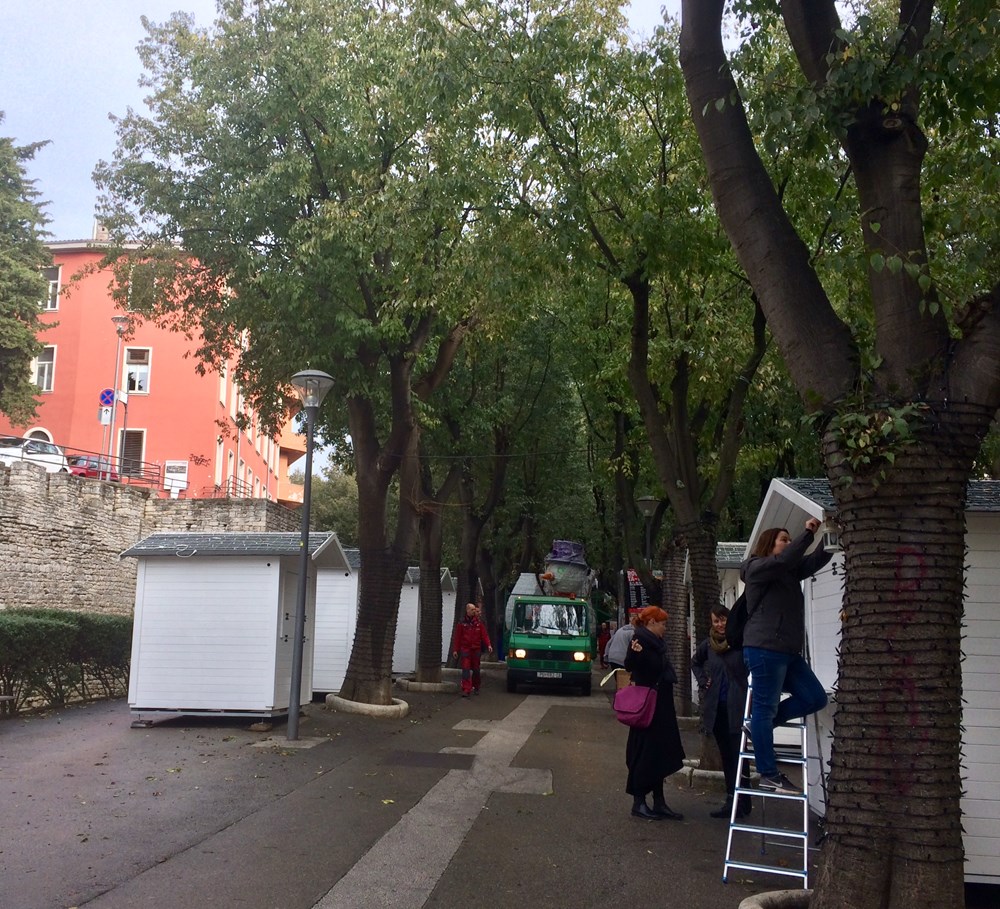 Na Portarati je danas počelo postavljanje prvih božićnih i novogodišnjih lampica i ukrase. Slaže se jelka na Portarati, na Giardinima su postavljene kućice za božićni sajam, i upravo se postavljaju ukrasi, snješko, saonice koje vuče sob.... (GI)
