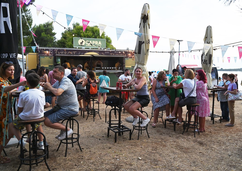 Uz smiraj zalazećeg sunca i taktove dobre glazbe, večeras je na Hidrobazi u Puntiželi započelo prvo izdanje pulskog Food Truck Festivala.