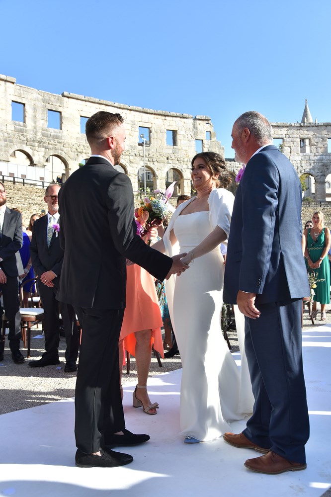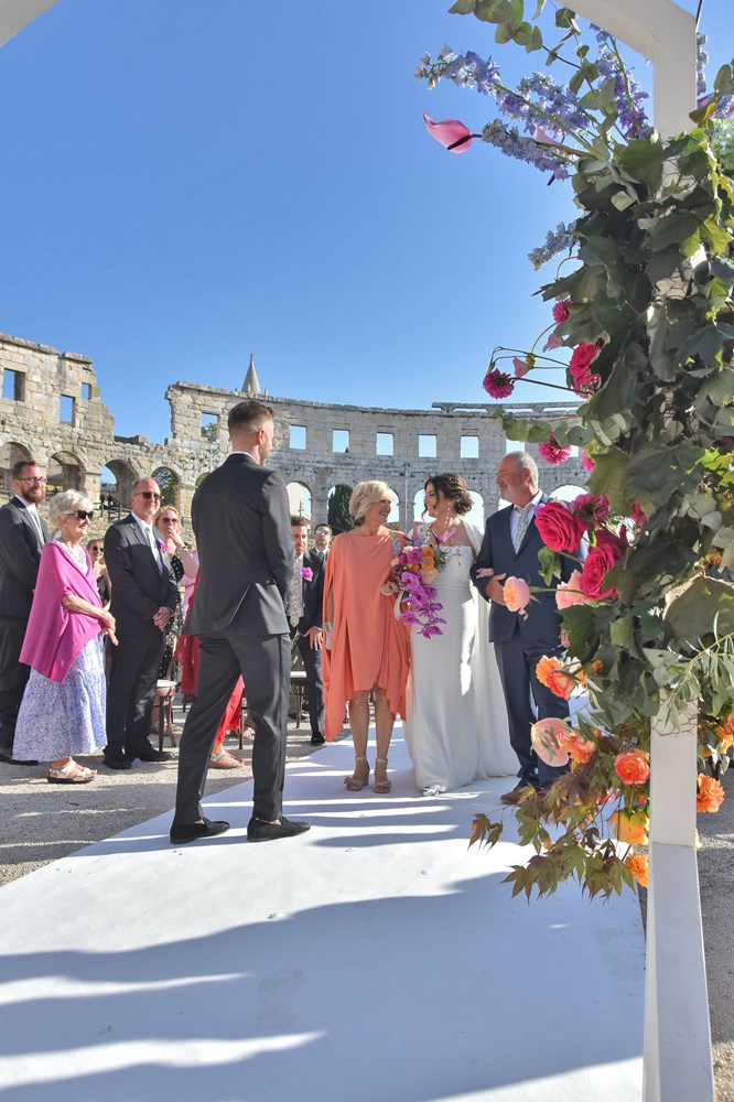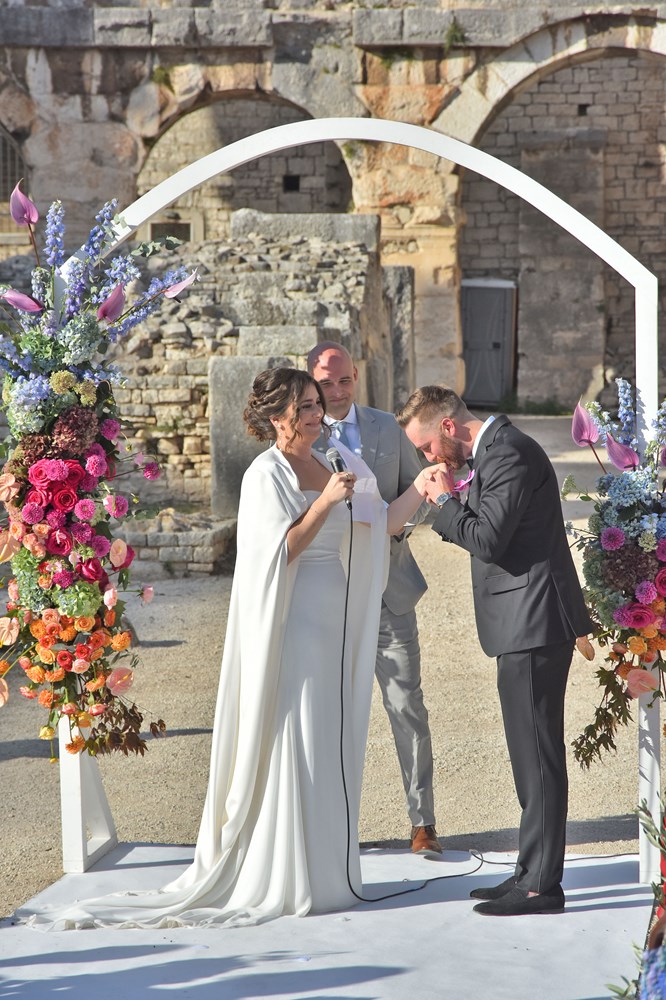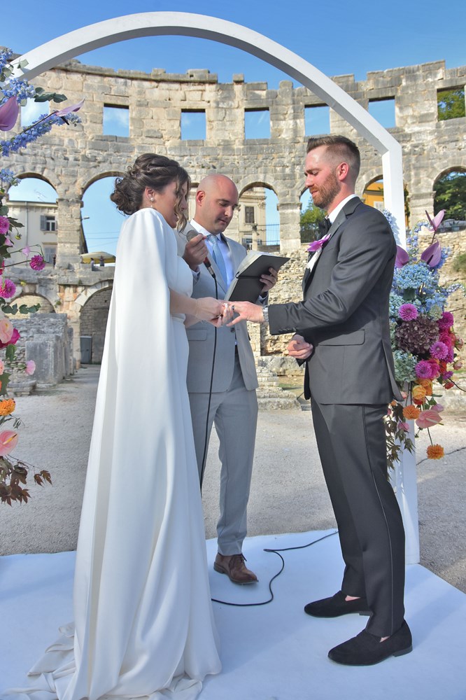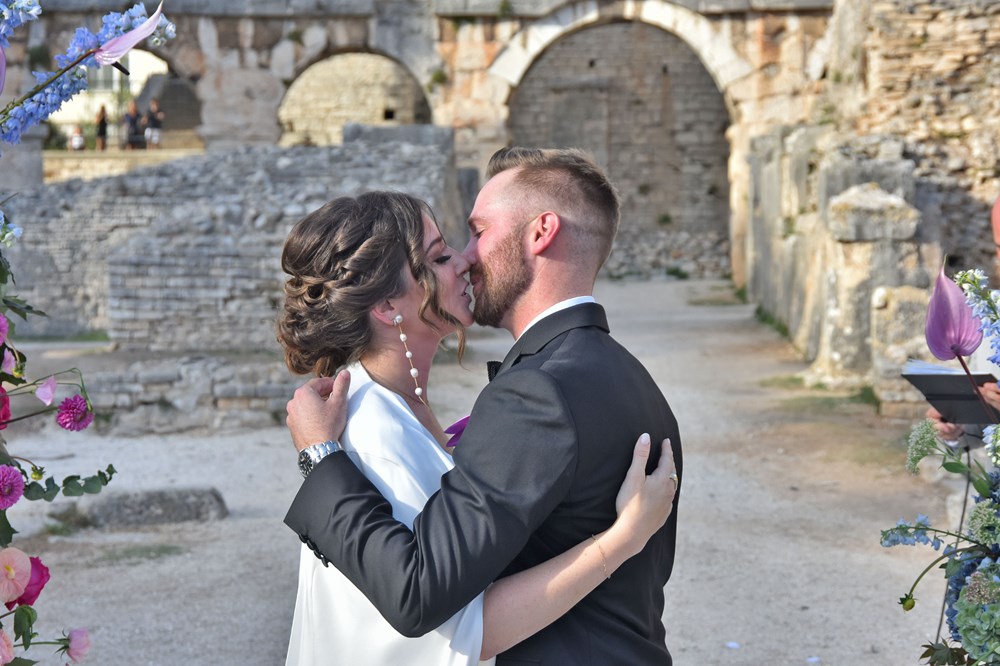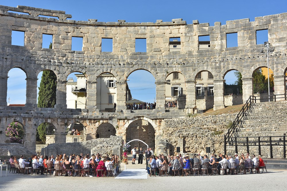 Danas se u pulskoj Areni zbio nesvakidašnji događaj, a radi se o obredu vjenčanja mladog bosansko-američkog para. Unutar zidina našeg amfiteatra vjenčali su se Anja Hrescak i Christopher Wascak. Prisutno je bilo 80-ak gostiju, što Amerikanaca, što naših, a ovaj su čin zabilježile i kamere Glasa Istre. O svemu smo pitali majku mladenke, koja je pristala ispričati nam o čemu se tu zapravo radi, tko su sretni mladenci i zašto su odabrali baš Arenu.