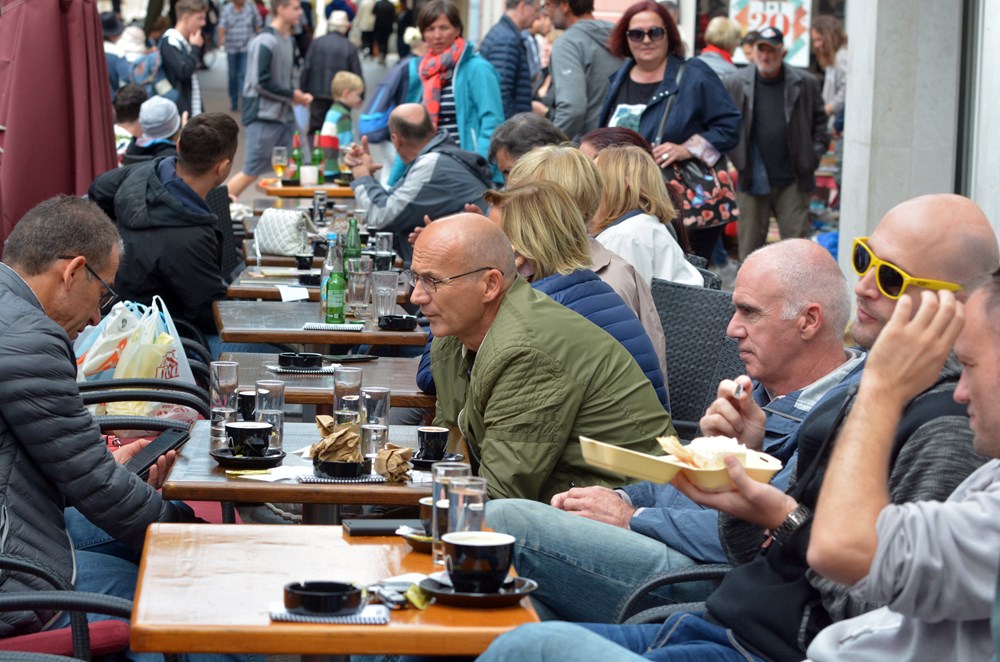 Subotnja špica u Puli i ovog je vikenda potvrdila da iako je jesen već ozbiljno zakucala na vrata, gostiju u gradu ne nedostaje. Mogu biti zadovoljni i ugostitelji čije su terase kafića bile dupkom pune. Uobičajeno su ih prije subotnjeg ručka i nabavke namirnica popunili brojni Puljani ali i strani turisti. U jednom trenutku, Ulicom Sergijevaca bilo se nemoguće probiti što definitivno ide u prilog tome da bi post sezona u najveće istarskom gardu mogla dobro proći.