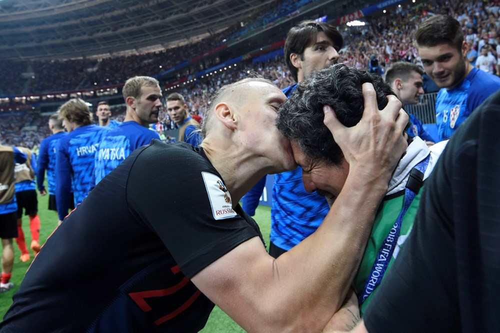Nogometaši Hrvatske su pali na njega tijekom slavlja pa mu se i ispričavali te ga grlili i ljubili.