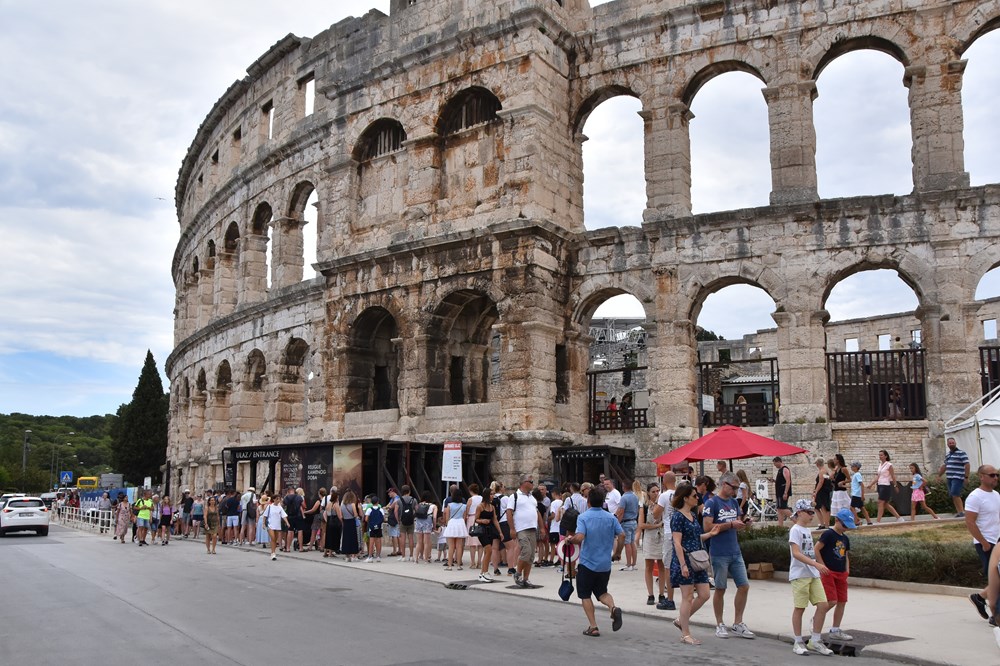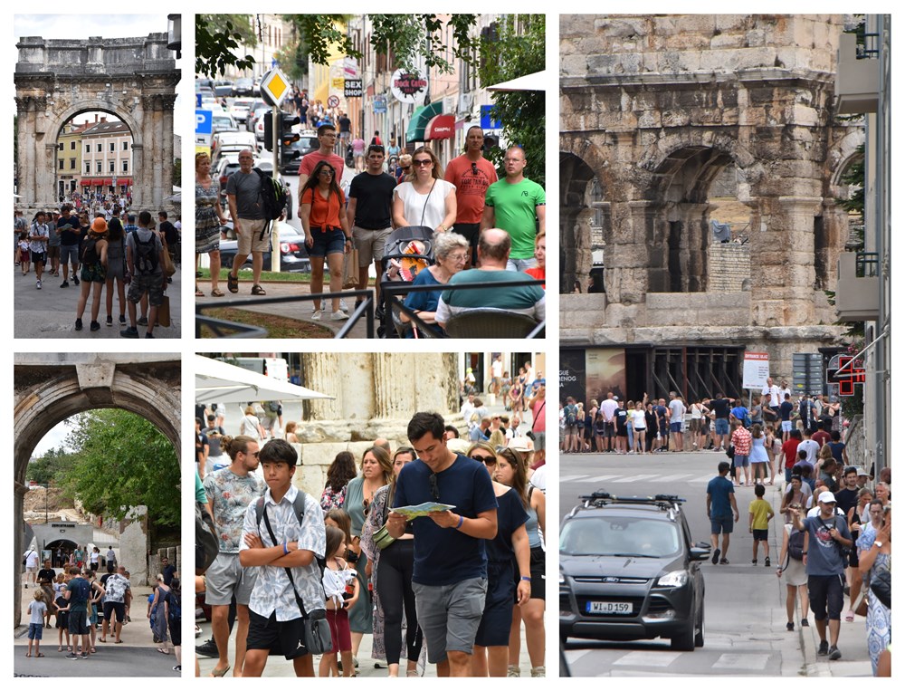 A sam centar Pule bio je krcat turistima - pred Arenom, Zerrostrasseom, kod Portarate, u ulici Sergijevaca, na Rivi... gužve je bilo svuda, a kako je to izgledalo pogledajte u velikoj fotogaleriji koju je snimio naš fotoreporter Duško Marušić Čiči.