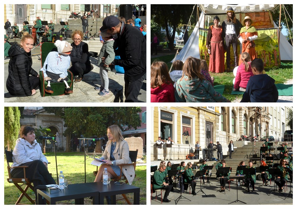 U subotu je održana prva u nizu manifestacija "Dođi u grad! Vieni in citta!", kojima će nova gradska uprava u Puli tijekom listopada i studenog nastojati oživjeti gradski centar. Subota je bila sunčana i - ljudi su došli! Grad je doista imao jednu kružnu priču, okupanu suncem i s malo bure. Krenuli smo ujutro od tržnice, gdje su se prodavale najukusnije fritule i domaće kobasice, a glazba odzvanjala s trga. Šušur se nastavio na Portarati, gdje su program za djecu priredile Puppete i Big bend Pula. Nataša i Anja Kolić predstavile su svoju toplu i dragu baku Reginu.
