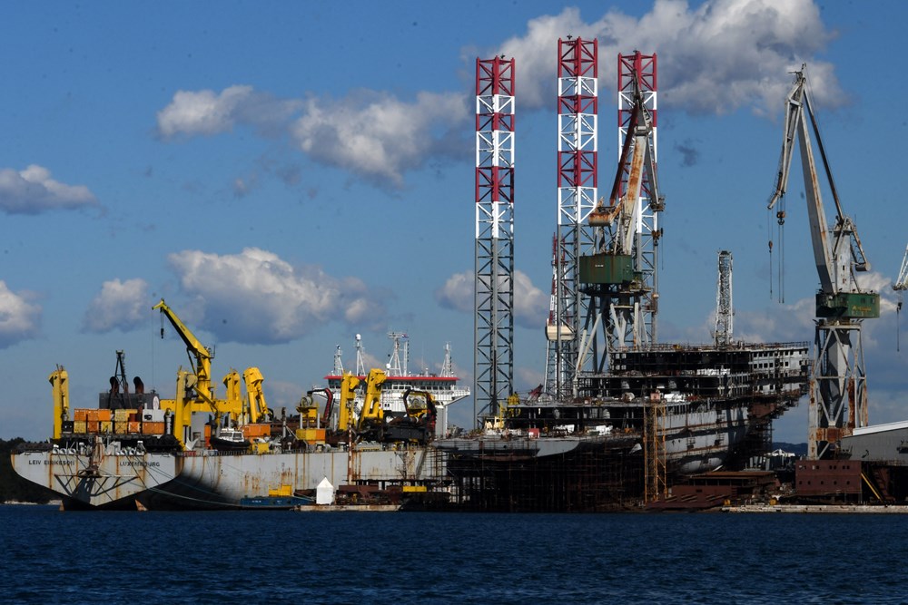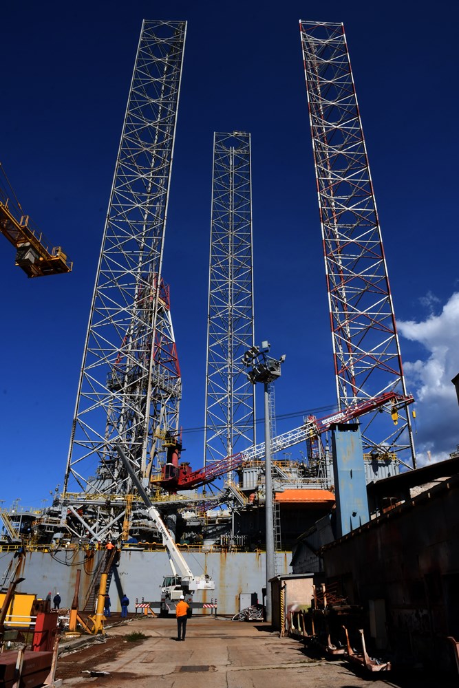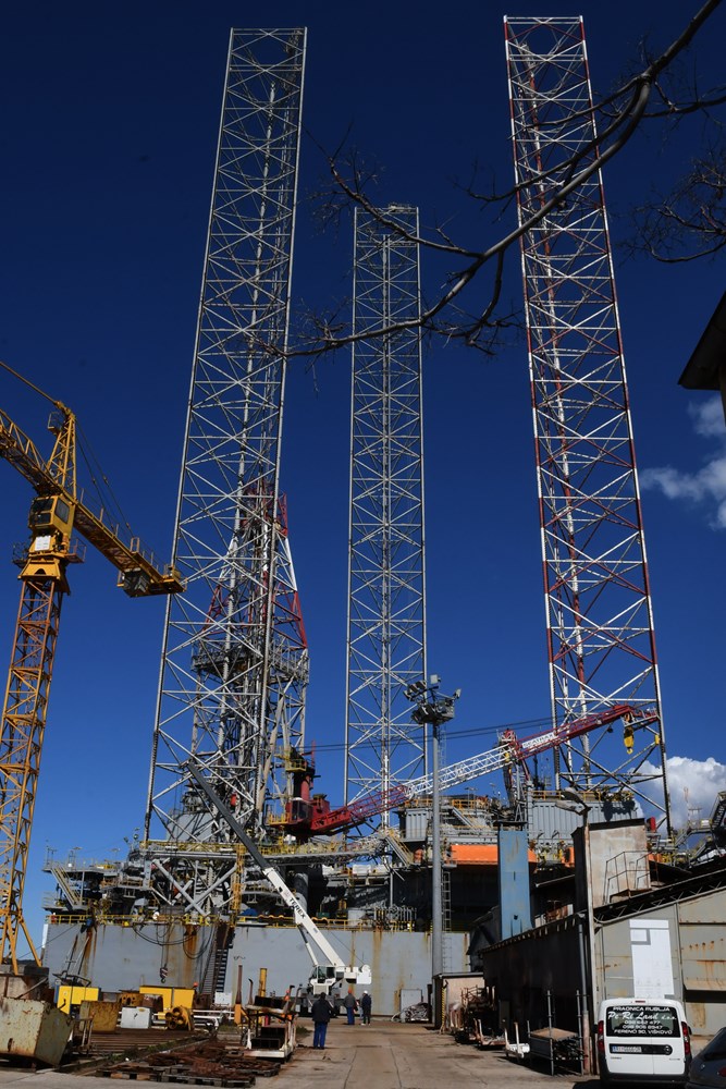 Visoki stupovi platformi mogu se vidjeti čak i iz Vodnjana, a kako smo već pisali, uz jučer dotegljenu platformu do kraja tjedna bi u "Uljanik" trebala stići još jedna.