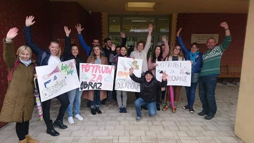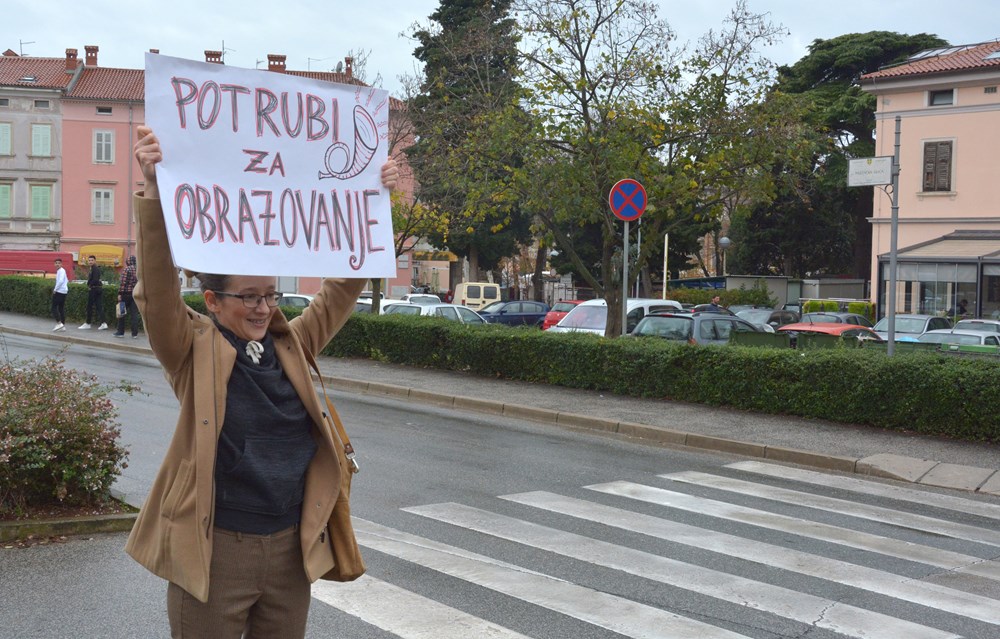 Pulski prosvjetari pridružili su se totalnom štrajku te u srijedu, 20. studenog 2019. izašli na ulice s transparentima "Potrubi za obrazovanje".