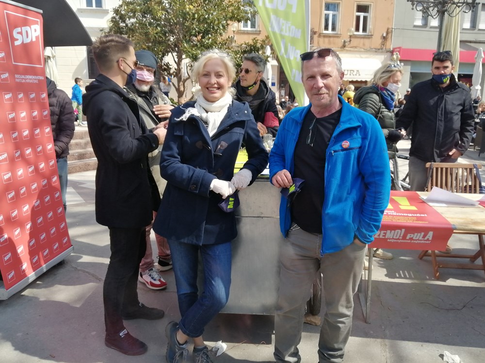 Prikupljanje potpisa dobro ide i SDP-ovim kandidatima. To su Sanja Radolovć za gradonačelnicu i Danijel Ferić za istarskog župana. S SDP-ovog štanda na Verudi kažu da građani prilaze i daju podršku.