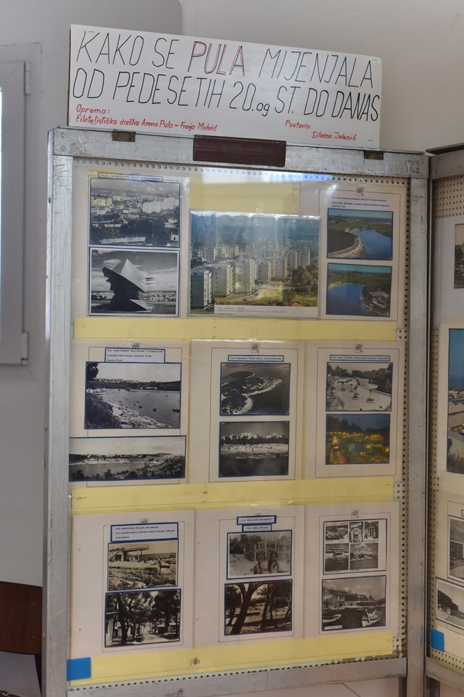 Izložba će se realizirati u dva djela pa uskoro možemo očekivati i stare razglednice Pule. Oprema je od Filatelističkog društva Arena Pula, a u slaganju izložbe pomagao je član tog Društva Franjo Muhvić.