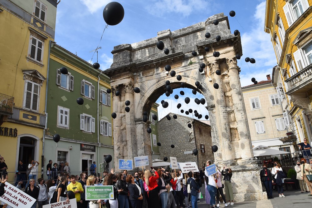 Sudionici mimohoda su, noseći prigodne transparentne i simbolične crne balone, hodali od Foruma pa kroz Ulicu Sergijevaca do Portarate, gdje je održan kratki prigodni program.