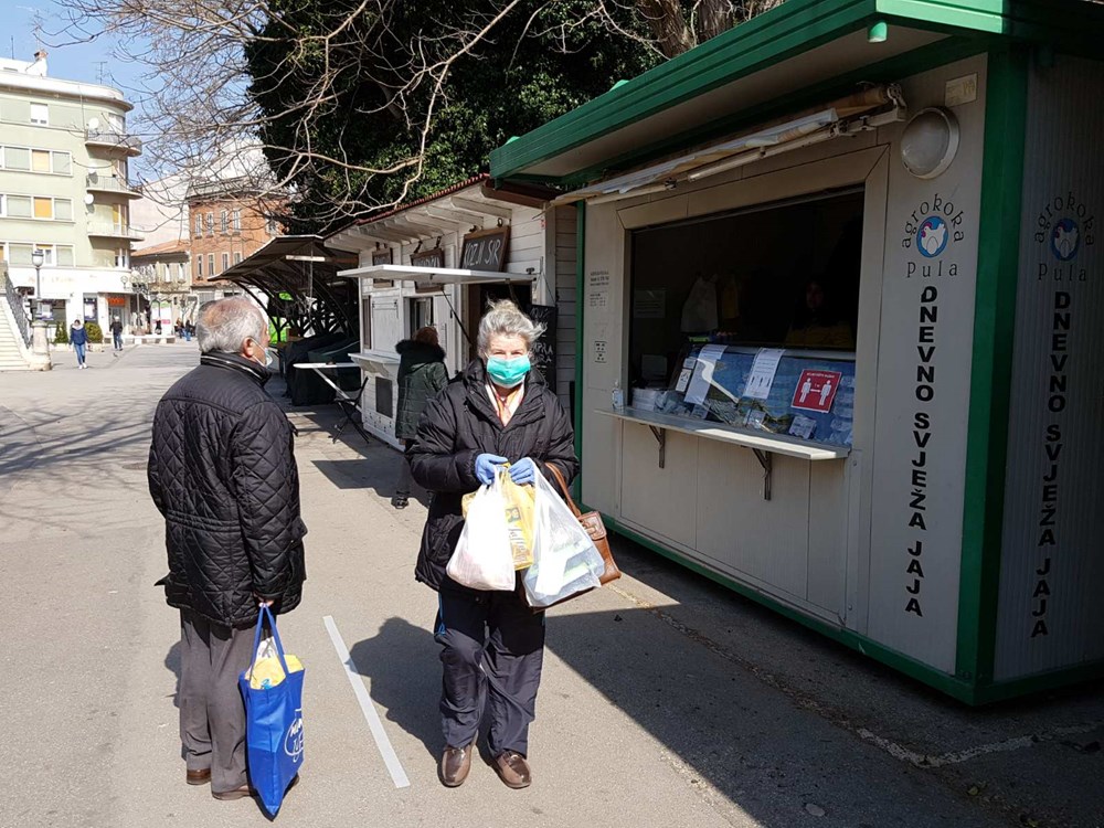 - Drugo, ova situacija financijski ubija ljude. Sigurno su dobili puno manju plaću, a ono malo što se ima, drži se kao crni fond. Nama mesarima još nisu snizili plaću, još je nismo ni dobili. Prvo je bio Uljanik, a sad nas ubija korona, pesimistično će Stanić. Promet je drastično pao, kaže, a njegov kolega Aldo Orlić sa štanda Pivca ispaljuje: "Promet je pao 99 posto! Situacija je jako loša, bolje je zatvoriti jer nam roba propada."