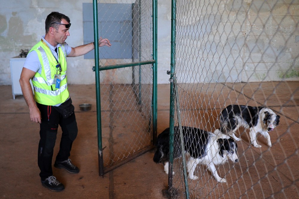 Danas ih, dakle, imaju ukupno pet, ali samo su dva psa aktivna. No, pošteno zarade svoje obroke jer svakodnevno rade i do osam sati. Najčešće su u obilasku ujutro od 5 do 10 sati i navečer od 18 do 21 sat, kada su i ptice najaktivnije. Ljeti, kada se dnevne vrućine penju i iznad 30 stupnjeva, ptice također miruju. No, u slučaju potrebe, osim pasa, za tjeranje se koriste i plinski topovi, petarde i aerolaseri, jer zaštitarska služba radi od 5 do 22 sata bez prestanka. Naiđu li druge životinje, zaštitari imaju pravo odstrela. No, i tih je životinja sve manje, a ne ubijaju ih ako nije nužno. Mahom naiđu divlje svinje, zečevi i čagljevi, dok je nekada, kada je bilo više šume oko aerodroma, znalo biti srna i lisica. Sada ih gotovo i nema.