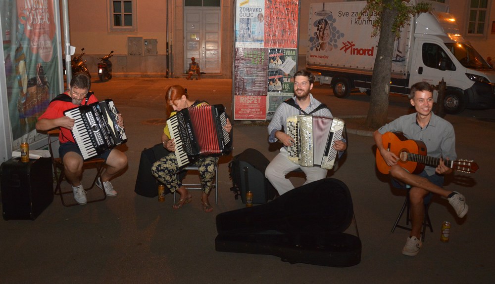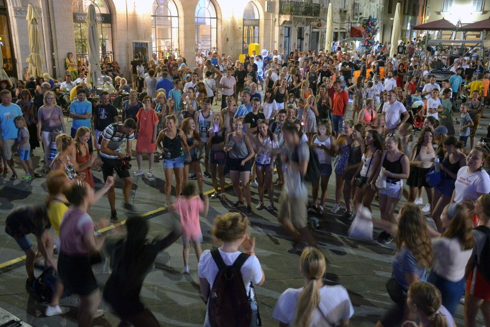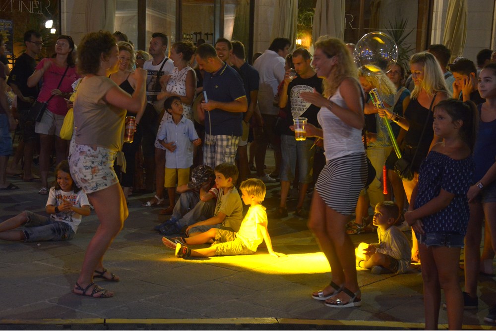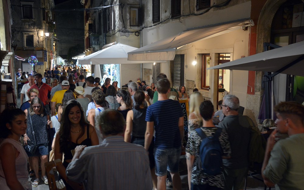 Iako službeno nisu bili dio ove velike pučke fešte, priliku su iskoristili trgovci, ugostitelji i organizatori raznih festivala, pa su nas tako, na putu prema Kandlerovoj, iznenadili ugodni elektro ritmovi u Titovom parku gdje si se mogao komotno opustiti i napuniti baterije za gužvanac koji slijedi. No, kao i lani, i ova je Pulska noć bila ležerna, ugodne temperature, koju su na Forumu podizali Koktelsi. Krenuli su u hlačama, da bi se potom preodjenuli u škotske suknjice koje su im odlično pristajale. Dečki su vrtjeli turovima, a faldice poskakivale u ritmu muzike za ples, čime su pokazali da odjeća nije krojena za muškarca ili ženu. Ona je, baš kao i parfem, uniseks, kreirana za ličnost, a ne spol. Ispred njih, skakao je Forum, gdje su nastupili i Grooversi. Nekoliko desetaka metara dalje, Trg sv. Tome, gdje su nastupili Primo tajo i Jazz orkestar, bio je gotovo meditativan. Malobrojna publika uživala je ispred Katedrale, a zvuci kontrabasa milovali su posjetitelje koji su večerali u obližnjim restoranima.