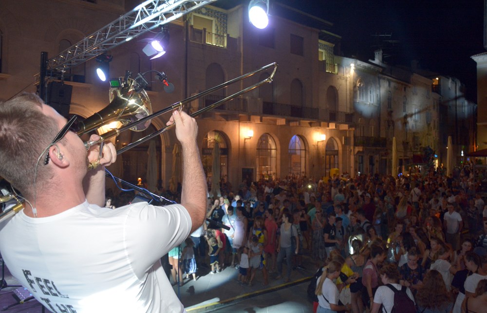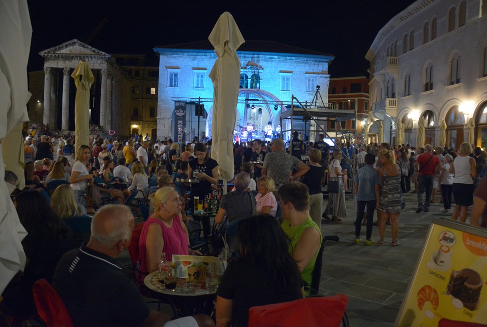 Svirka se odvijala na ukupno šest punktova, a nešto mirnije bilo je na Danteovom trgu, uz Ad Libitum. Pulska noć poklopila se s nastupom Miroslava Škore u vrtu Doma hrvatskih branitelja, koji je također bio jak mamac za publiku. Muzika je bila glasna, a mnogi bez karte tiskali su se uz ogradu poput roja pčela, nastojeći doživjeti koncert svim čulima.