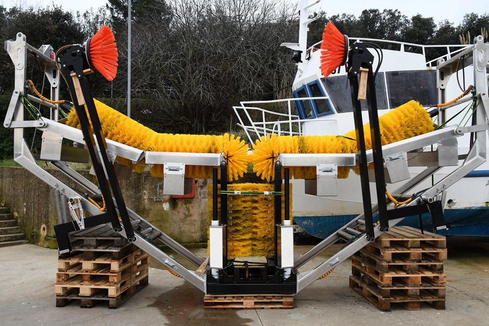 U pulskoj lučici Bunarina jučer je postavljena plutajuća konstrukcija "Drive-In Boatwash". Riječ je o stroju za pranje trupa brodova, prvom takvom na cijelom Sredozemlju. Da će usluga biti dostupna već kroz nekoliko dana, saznajemo od Saše Artukovića, jednog od pokretača poslovanja. Na ovu ideju došao je zajedno s kolegom Lukom Čovićem iz Uljanika i Ognjenom Kuzmanovićem.