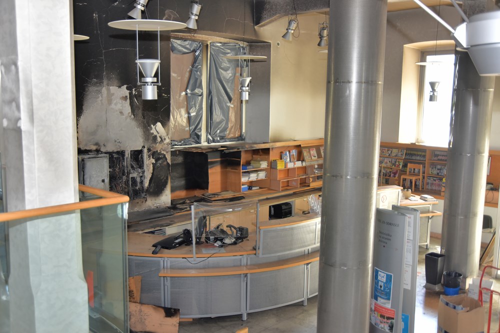 Jučer su montirana nova ulazna vrata knjižnice, a ravnateljica kaže da je pokrenula pregovore o izradi novih prozora. "Moramo skinuti sa stropa sva rasvjetna tijela, mnoge i zamijeniti. Dok razgovaramo s električarima i tražimo različita rješenja istovremeno dogovaramo čišćenje zidova i njihovo farbanje. Pregovaramo o nabavci nove električne opreme i osposobljavanju postojeće koja nije oštećena čađom. Sada smo prilikom čišćenja lifta utvrdili da je puknuto i staklo dizala. Prva procjena je bila kako je šteta 700.000 kuna, a sada vidimo da će biti puno veća", zaključila je ravnateljica.