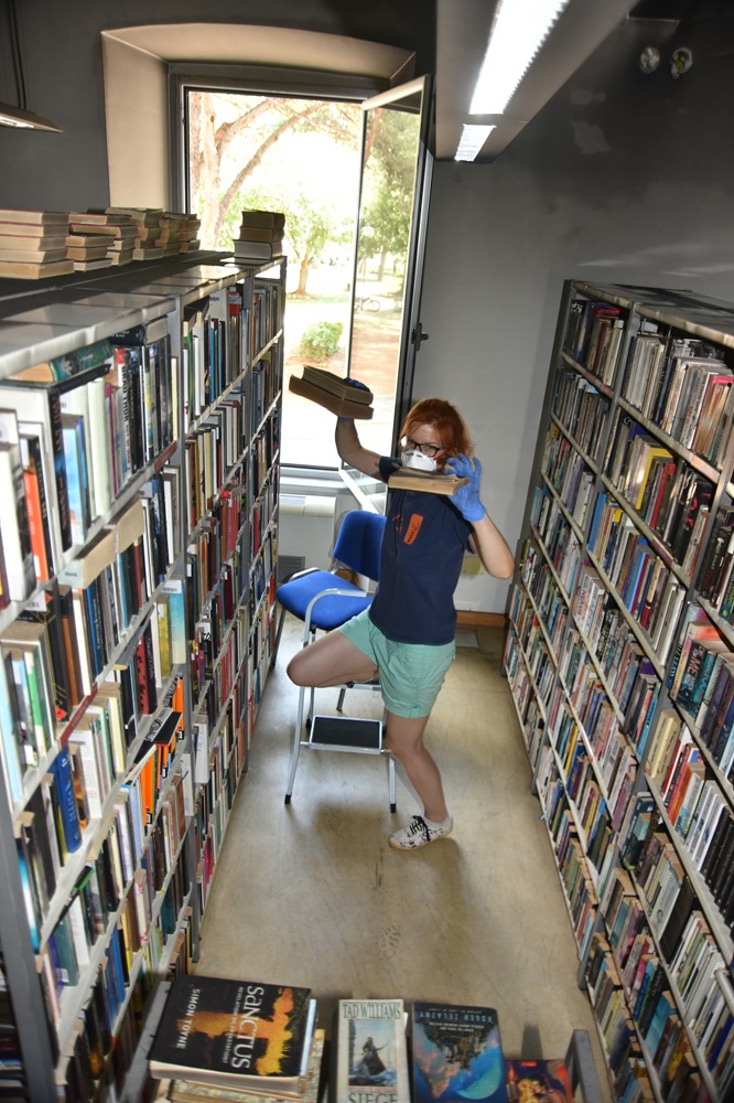 - Sa svake knjige prvo usisamo čađu s posebnim usisivačem koji pušta vodenu paru. Potom knjigu prebrišemo krpicom od kaučuka te ostavimo je na prozračivanje. Neke knjige odmah izdvajamo, jer su za otpis. No, u prosjeku na svaku knjigu utrošimo tri minute i kako imamo 180.000 knjiga trebati će nam dosta vremena da vratimo knjižnicu u prvobitno stanje, rekla nam je Nadia Bužleta, ravnateljica Gradske knjižnice i čitaonice Pula prilikom jučerašnje posjete Središnjoj knjižnici gdje je izbio požar prije dva tjedna.