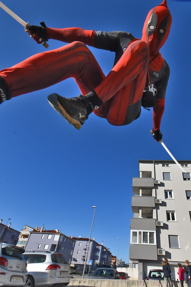 Protekla dva tjedna pulsku javnost zbunila je pojava čovjeka koji se, u doba maski, odlučio za nešto drugačiju opciju: odjeven u kostim Deadpoola šeće gradom ili, još češće, vozi se autom dok kroz otvorene prozore trešte pjesme iz istoimenog holivudskog filma. Ono što ljudi ne znaju jest da Arnes Beganović, koji se krije iza maske popularnog anti-junaka, to ne čini samo iz puke razonode, već u tom kostimu i - radi.