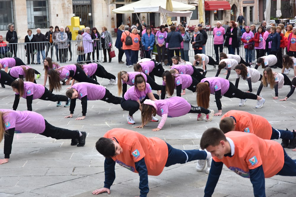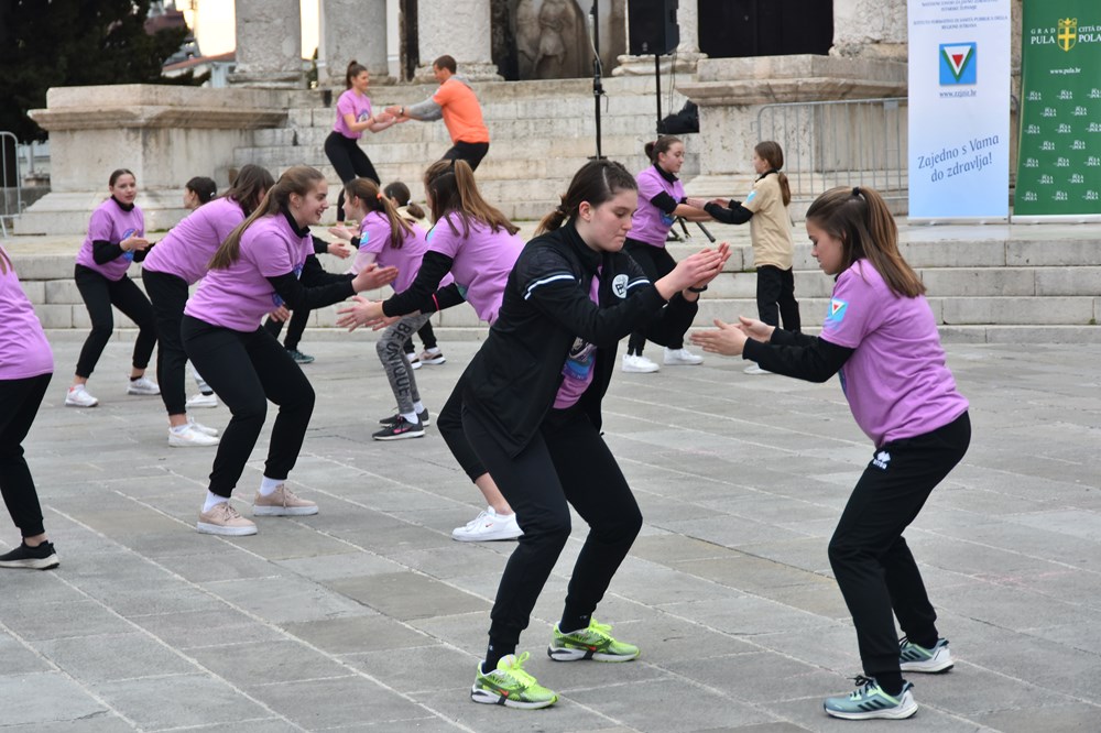 Brojnim sudionicima koji su se priključili manifestaciji "Vježbanjem do zdravlja" čime su Grad Pula i Nastavni Zavod za javno zdravstvo istarske županije obilježili Svjetski dan zdravlja koji se održava danas 7. travnja, jučerašnje prohladno kasno popodne nimalo nije smetalo, čak štoviše dobro zagrijanima je i godilo. Kako bi se ukazalo na važnost tjelesne aktivnosti Forum je u popodnevnim satima pretvoren u veliku dvoranu na otvorenom na kojem su sve dobne skupine pokazale važnost vježbanja - od najmlađih do najstarijih.