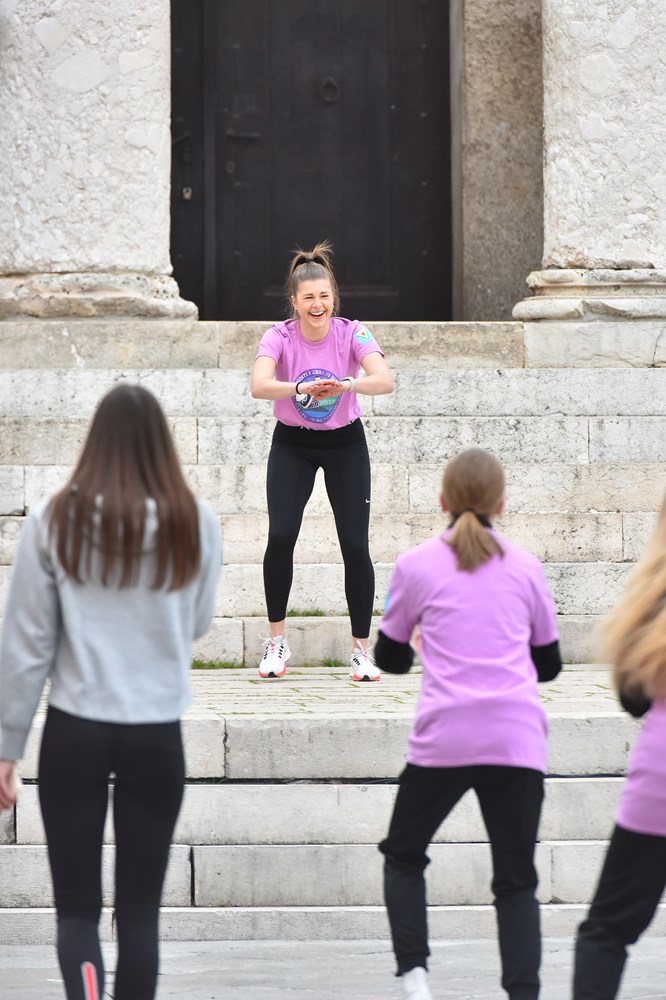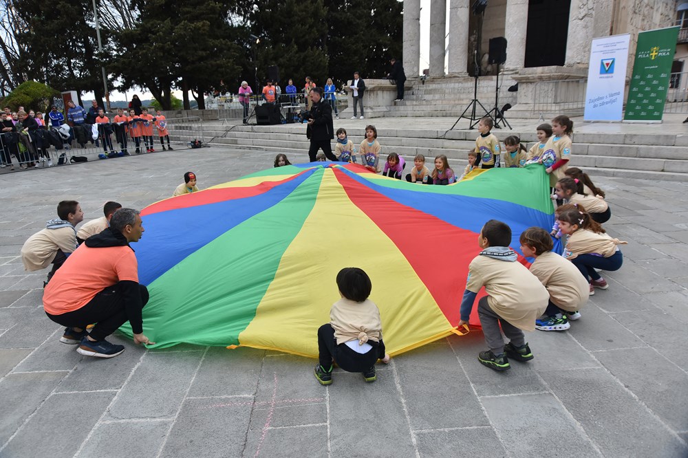 Kako vježbaju najmlađi pokazali su članovi dviju sportskih skupina Dječjeg vrtića Mali svijet koji su otvorili popodnevnu sportsko - rekreativnu manifestaciju. Točkice i Ježići su pod vodstvom Marka Čakana odradili trening i potvrdili da je od malih nogu važno vježbanje. Nakon toga su mlade odbojkašice i košarkaši pod vodstvom kineziologa Tine Živković, Aristee Bilić i Gorana Brenka odradili pravi sportski trening pun čučnjeva i skakanja, a završilo se velikim plankom. Seniori su bili šarmantni kao i najmlađi, članovi kluba 65 + i pulski hodači odradili su trening pod vedrim nebom i dokazali da nikada nije kasno da se počne vježbati. Dokaz tome je i 85-godišnji Špiro Dmitrović: "Gledam da što više održim to zdravlje - hranom koja nije masna i ne truje organizam i kretanjem. Da nisam hodao odavno me ne bi bilo", veli vitalni Puljanin koji bez problema propješači 10 kilometara. "Hodanje je zlato. To me održava i svima preporučam. To je najbolja tjelovježba".
