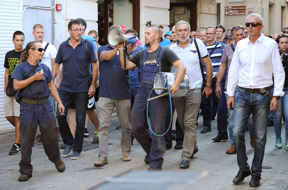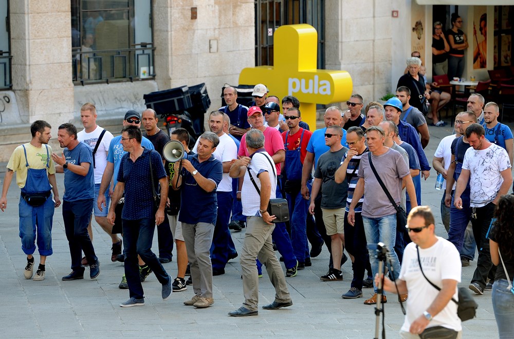 Drugi je dan generalnog štrajka u Uljaniku. Radnici su i jutros došli na svoja radna mjesta, a zatim se nešto prije 10 sati okupili pred Uprave prosvjedujući i zahtijevajući ostavku Giannija Rossande i Uprave. Iz Uprave im se nitko nije obratio, a čelni čovjek kompanije navodno je na putu prema Zagrebu gdje bi nakon sjednice Vlade, kako je jučer najavio i premijer Plenković, o problemu i traženju rješenja trebao razgovarati s njim i ministrima dva ključna ministarstva, gospodarstva i financija. U 9 sati krenuo je mimohod Uljanikovaca gradom koji je, za razliku od jučerašnjeg spontanog, danas organiziran i podržan od strane Štrajkaškog odbora i uredno najavljen nadležnim službama. Prva točka mimohoda bio je Forum i sjedište gradske Uprave ispred kojeg se prosvjednicima obratio gradonačelnik Boris Miletić, no njegove poruke o tome da je očuvanje radnih mjesta i brodogradnje najveći prioritet lokalne vlasti nije uspio smiriti nezadovoljstvo radnika. Nakon obraćanja Miletića nastavljen je mimohod gradom koji se odvija bez incidenata, a u 10 sati dolazak pred glavnu portu najavili su i saborski zastupnici Živog zida Ivan Vilibor Sinčić i Ivan Pernar. (M. P.)