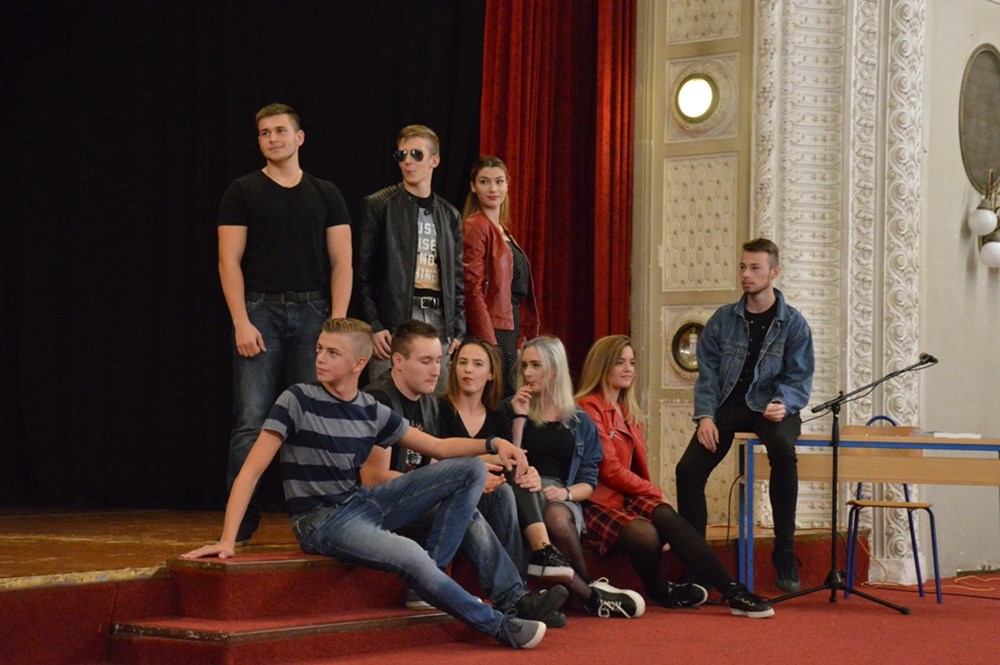 Glumci INK-a Valter Roša i Lara Živolić, i sami nekadašnji đaci ove škole, osmislili su scenski nastup učenika koji su u tri scene predstavili 50-e i 70-e godine prošlog stoljeća, kao i suvremeno doba u učionici, citirajući članke Glasa Istre o natjecanjima i problemima škole kroz povijest