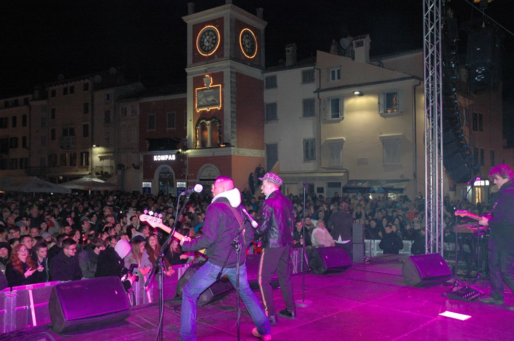 Središnji gradski trg u Rovinju bio je pak premalen da bi prihvatio sve koji su Novu Godinu odlučili dočekati na otvorenom uz program kojeg je pripremila lokalna Turistička zajednica. Bilo je živo i veselu duž cijelu gradsku rivu. Svirka je počela već prije 22 sati s rovinjskom grupom Party band koja je majstorski zagrijala publiku do dolaska (točno u 23 sati) Prljavog kazališta koji je Rovinjce i njihove mnogobrojne goste uveo u 2019. godinu. Organizatori su odglumili Švicarce pa je prva raketa očekivanog vatrometa ispaljena točno u ponoć (koja sekunda poslije). Boje i svijetla vatrometa na rivi vratili su Rovinj nakratko u ljetnu atmosferu, a tome je kumovao i blagonaklono vrijeme s ugodnom zimskom temperaturom ublaženu sa čašom kuhanog vina koji se nudio na okolnim štandovima. Hourini Prljavci dokazali su se kao bend za sve generacije, pjevalo se i plesalo do jedan sat u noći kada su se na binu vratili odlični Rovinjci grupe Party band koji su održali novogodišnju atmosferu do kasno u noći.