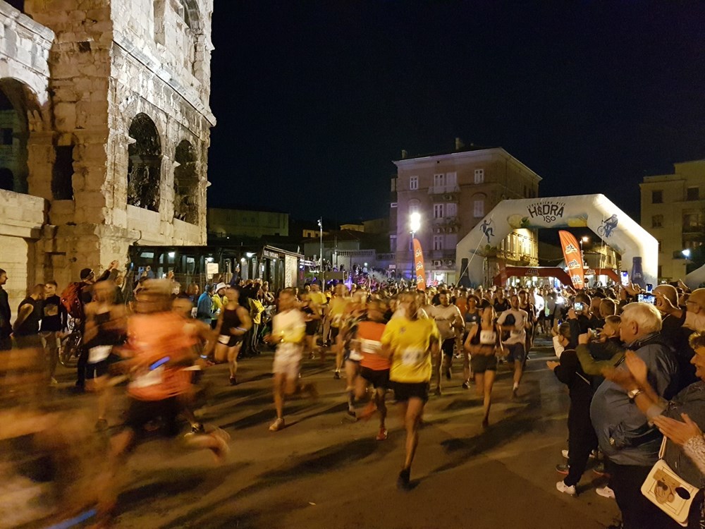 Večeras se u Puli trči jedna od najatraktivnijih utrka ne samo u Hrvatskoj. Više od tisuću prijavljenih sportaša i rekreativaca trči kroz pulske ulice osvijetljene mnoštvom instalacija. Naime, u isto se vrijeme održava završni dan Festivala svjetla - Visualia.