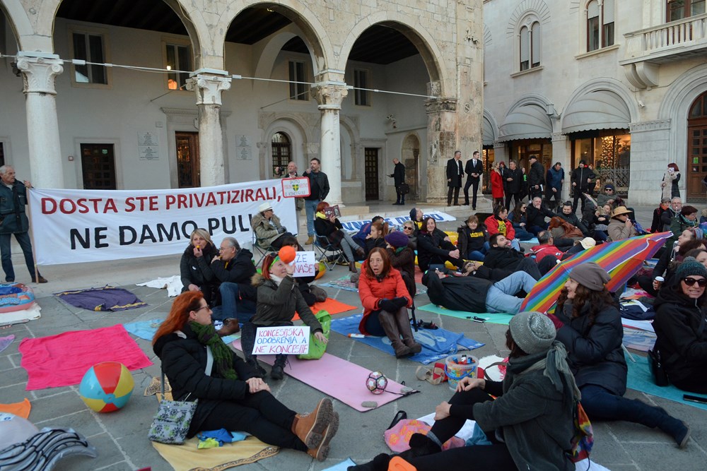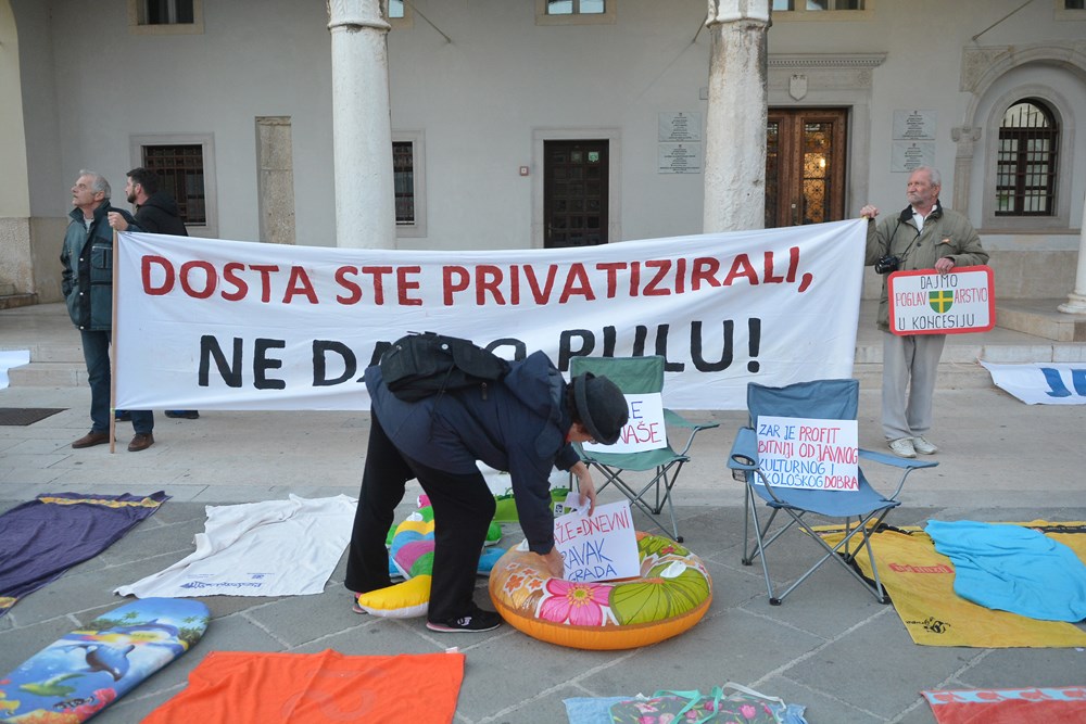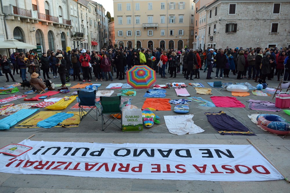 Oko 150 pripadnika inicijative Volim Pulu i građana danas je, uoči početka sjednice Gradskog vijeća na kojoj se odlučivalo o dodjeljivanju dugogodišnjih koncesija na pulskim plažama, zaglušujućim zviždanjem, govorima, glazbom, transparentima i simbolično rasprostrtim ručnicima poručilo vijećnicima da ne žele koncesiju na javnom dobru jer ono, kažu, pripada svim građanima, a ne odabranim pojedincima.