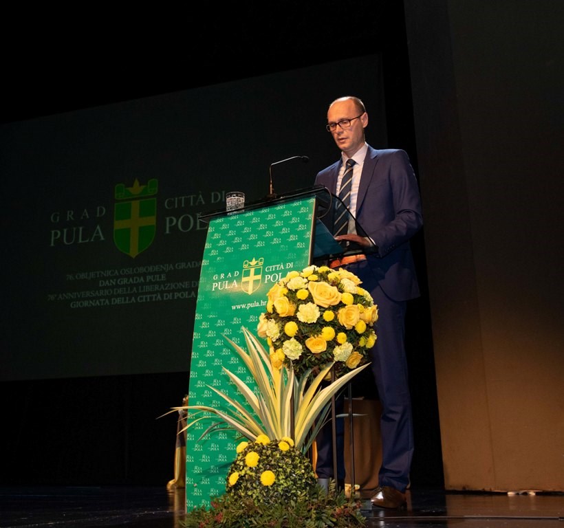 Predsjednik Gradskog vijeća Grada Pule Tiziano Sošić prigodnim se riječima obratio i čestitao Dan Grada Pule i Dan oslobođenja. „Glavna misao o Puli - koju nosim sa sobom - je da imamo vrijedne građane koji se ne boje otvoreno iskazati svoje stavove, pa i oštrom kritikom prozvati one koje smatraju odgovornima. S druge strane, građani Pule pokazali su u najtežim trenucima strpljenje, u ovim teškim okolnostima Pandemije; solidarnost, kada je trebalo u takvim okolnostima - organizirati i dostaviti humanitarnu pomoć unesrećenima u potresu u Banovini; dostojanstvo i umjerenost, u dijalogu sa onima koje drukčije misle. Iz navedenih razloga uopće ne sumnjam da će Pula - vođena karakterom svojih građana - izaći iz ove krize snažnija jer je to bila konstanta u njezinoj povijesti. Pula je grad koji je puno puta „pao“ ali to je i grad koji se uvijek vratio na svoje noge. Živjela Pula – Viva Pola“ rekao je Tiziano Sošić.