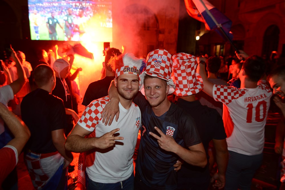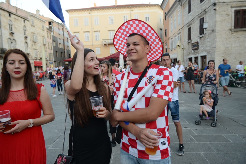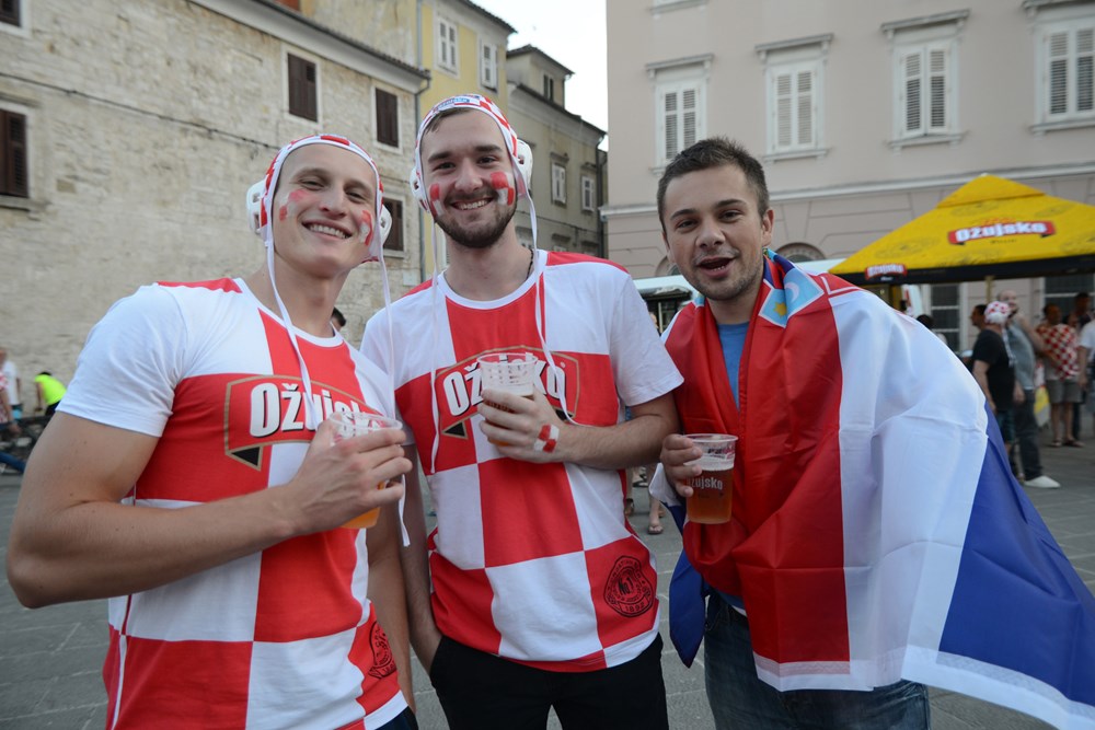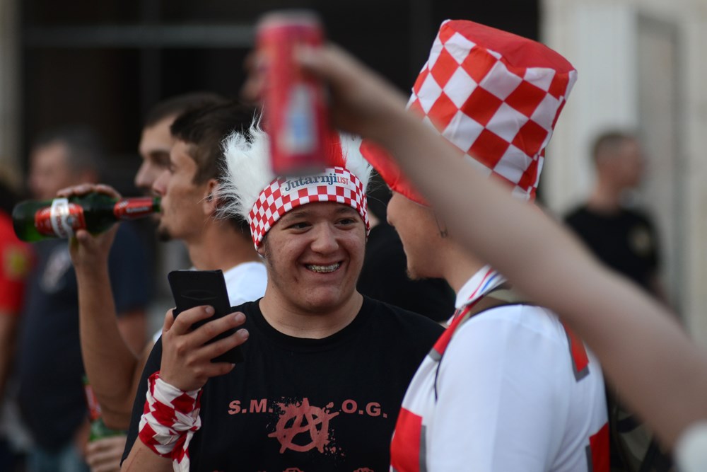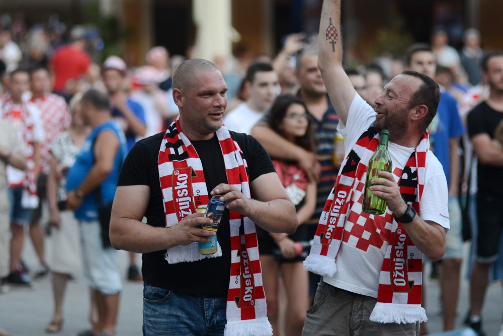"Mi, Hrvati!", "Srce vatreno" i "Neka pati koga smeta" orilo se iz stotina grla veselih djevojaka i mladića. Kafići na trgu bili su puni, a nijedan ugostiteljski lokal ni u širem centru grada nije ostao imun na nogometno ludilo pa se rezultat utakmice mogao pratiti doslovno i u hodu, pogledavajući ekrane od terase do terase.