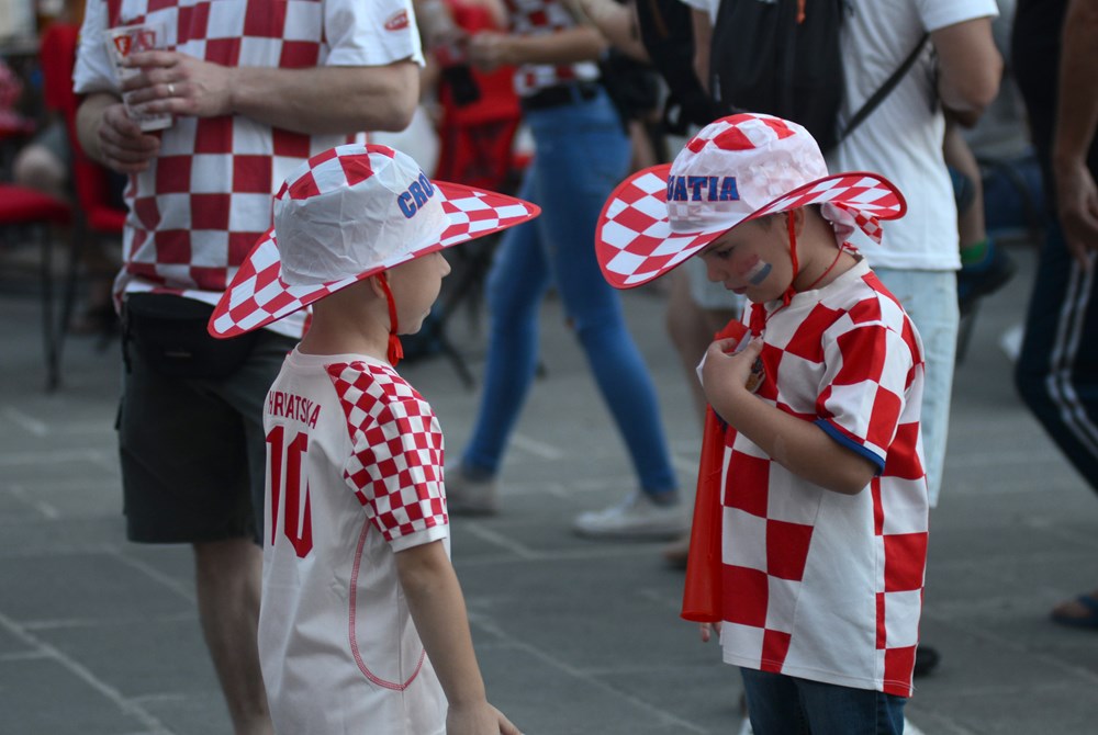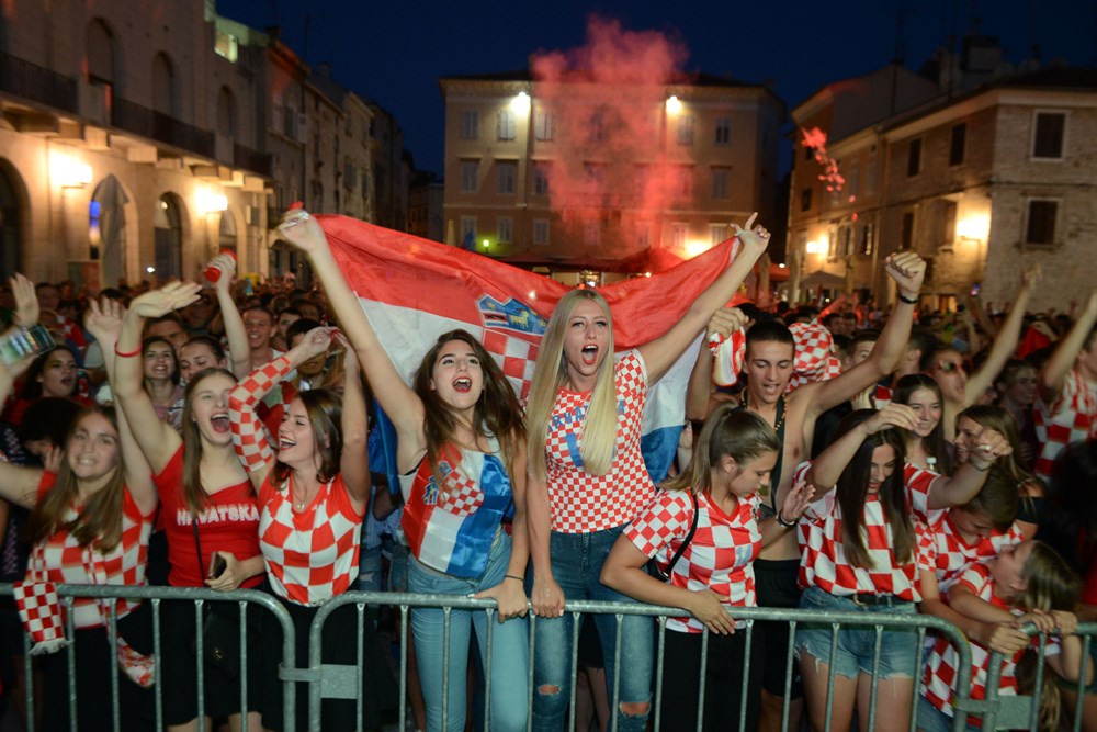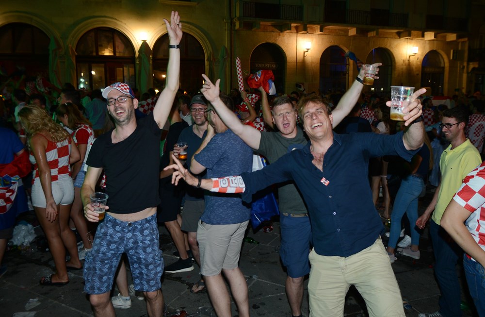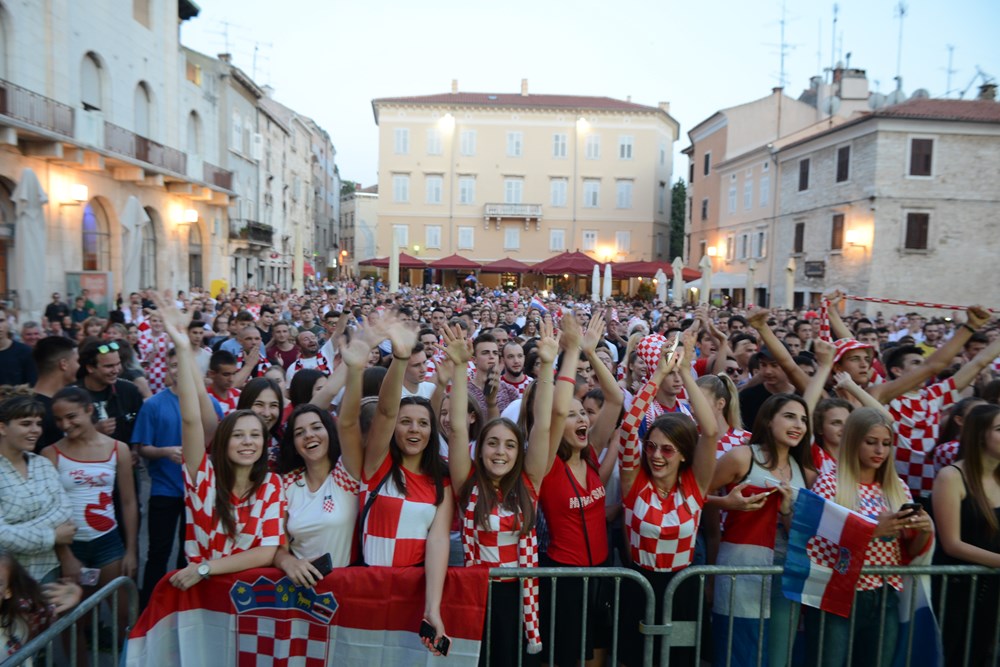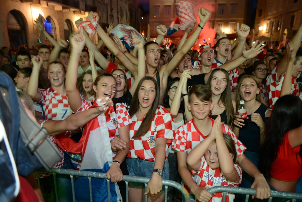 "Mi, Hrvati!", "Srce vatreno" i "Neka pati koga smeta" orilo se iz stotina grla veselih djevojaka i mladića. Kafići na trgu bili su puni, a nijedan ugostiteljski lokal ni u širem centru grada nije ostao imun na nogometno ludilo pa se rezultat utakmice mogao pratiti doslovno i u hodu, pogledavajući ekrane od terase do terase.