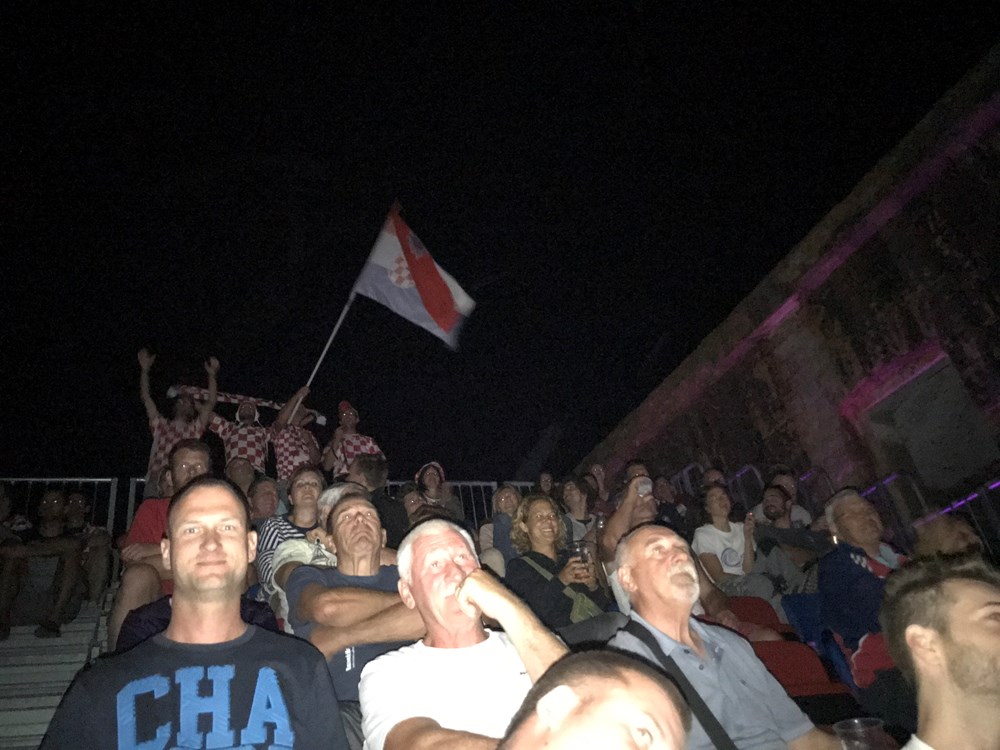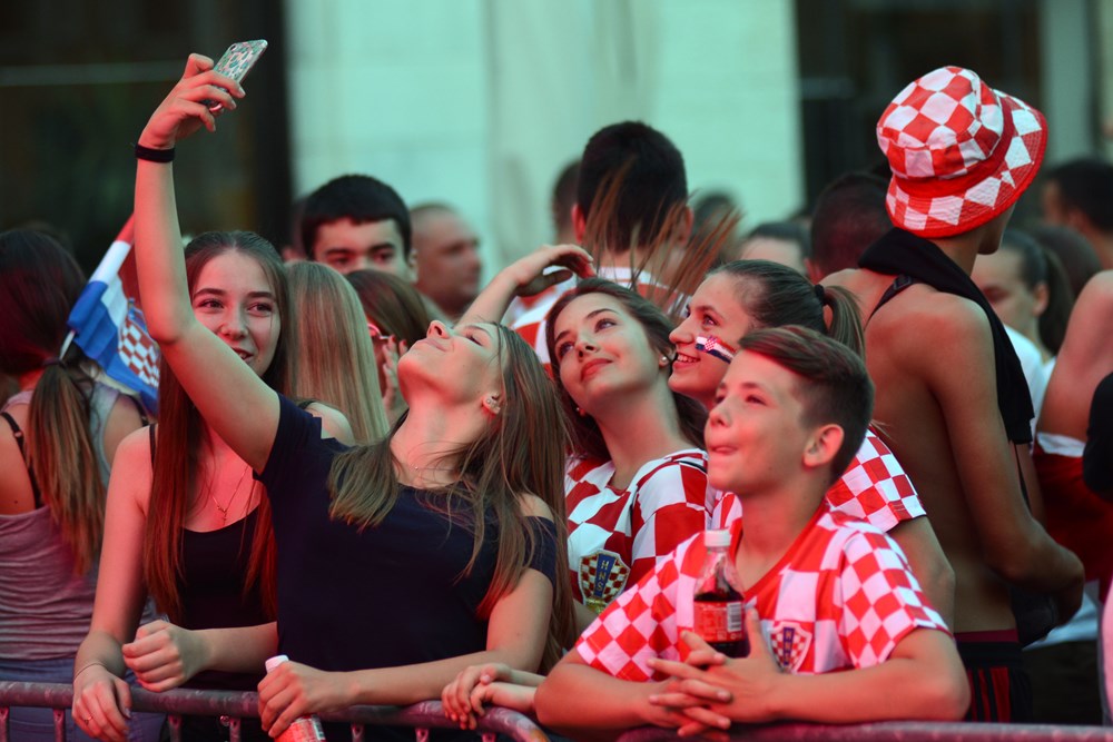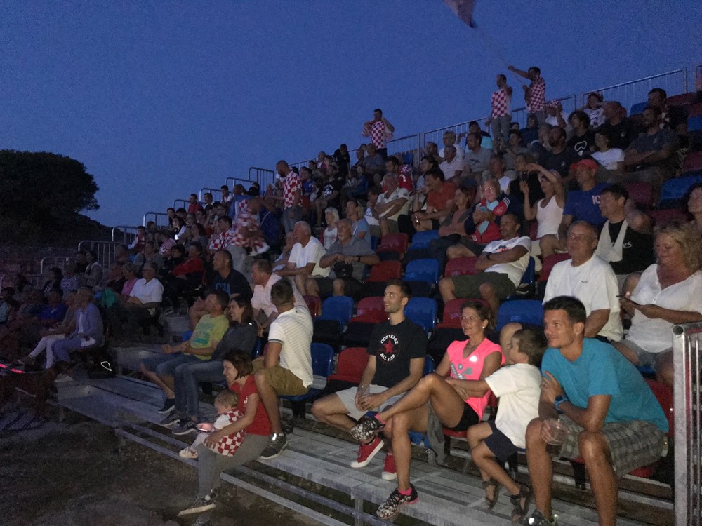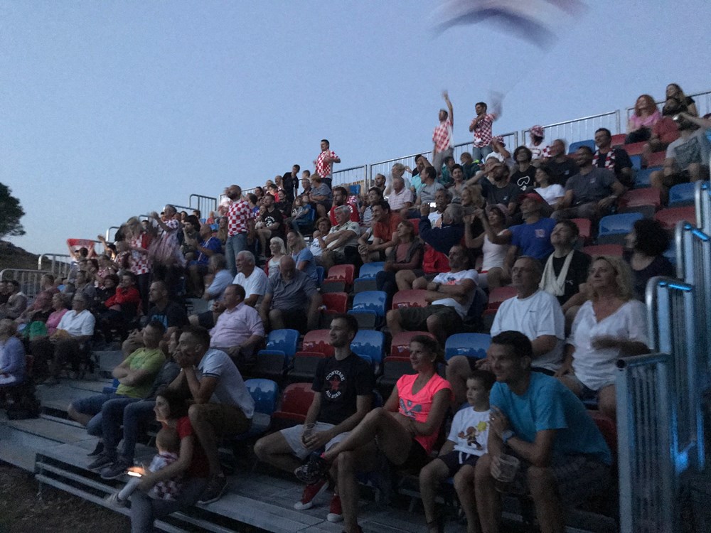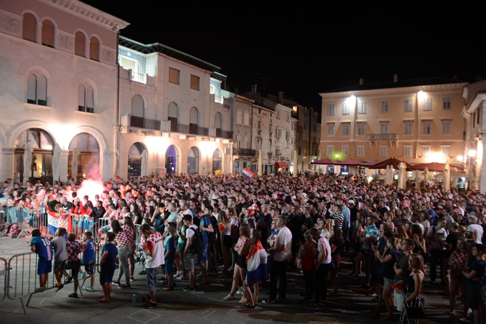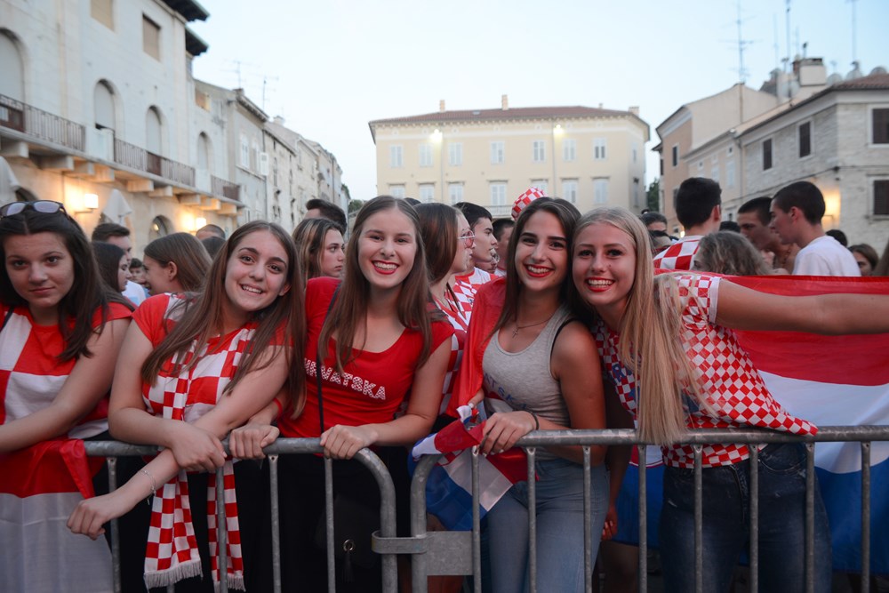 Pred velikim ekranom tekmu je pratilo ponajviše mladih koji su dobre akcije i golove Dalićevih odabranika proslavili uz baklje, obavezne crveno-bijele dresove, zastave i ostale navijačke rekvizite, dok su s distance oduševljenje pobjedom u nešto tišem tonu iskazivali navijači starije generacije, roditelji s malom djecom, ali i brojni turisti. Bez straha, jer navijanje je prošlo uglavnom u korektnom tonu, bez spomena vrijednih ekscesa.