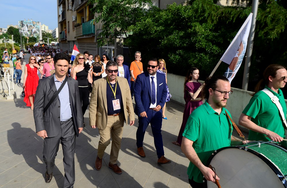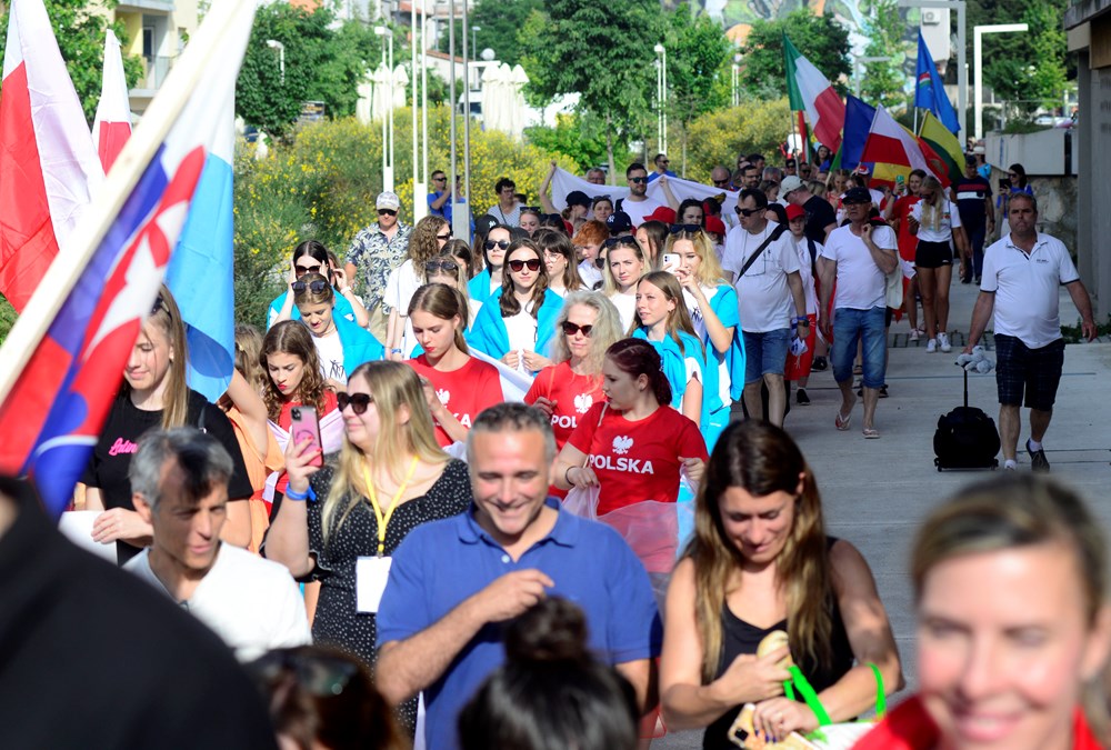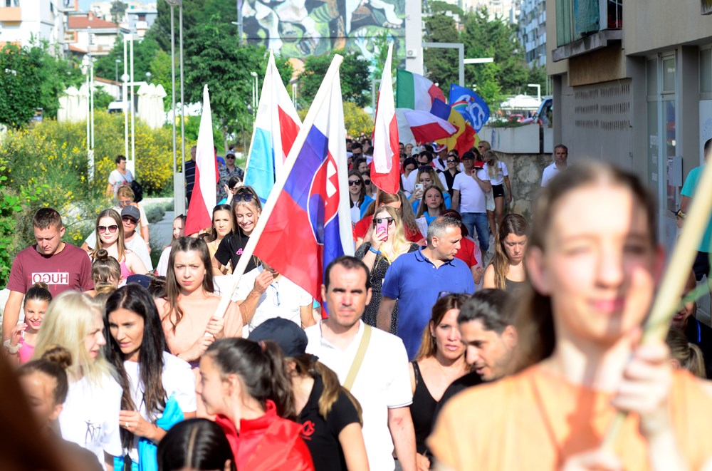 Pulski Trg kralja Tomislava preplavili su danas plesači koji su se glasno i veselo, sa zastavama svojih država, uputili prema Domu sportova Mate Parlov. Ondje se održala ceremonija otvorenja Svjetskog natjecanja u modernim i sportskim plesovima u organizaciji IDF Federacije i KUD "TASA"/ Art Dance Studia koje predvode Robert Ban i Tatjana Samuele Ban.
