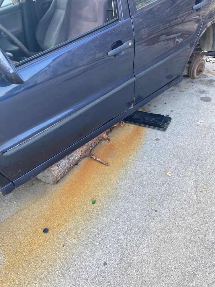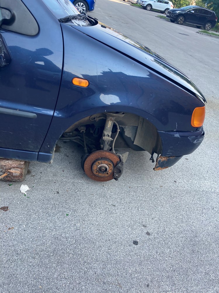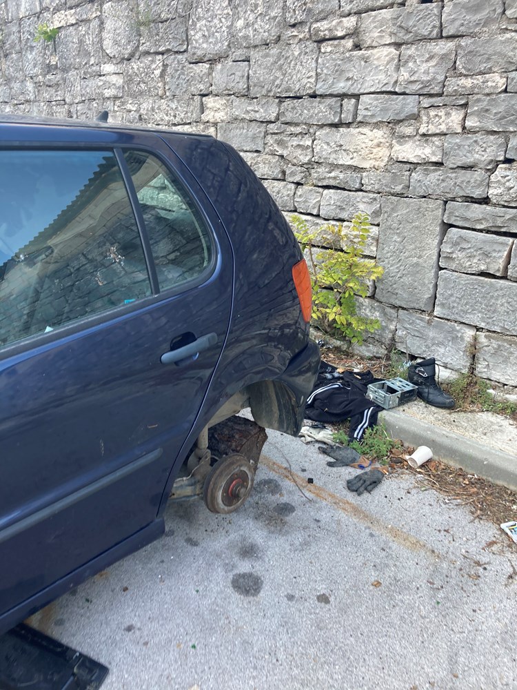 Informacije o automobilu koje su nam bile poznate - marka Volkswagen, stariji model, razbijen, bez kotača, ostavljen iznad zgrade Rojca, prenijeli smo komunalnom redaru koji nam je obećao da će njegova služba postupiti na temelju naše dojave.