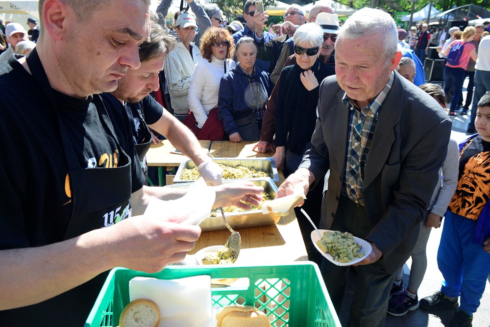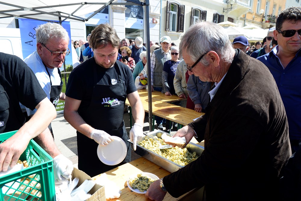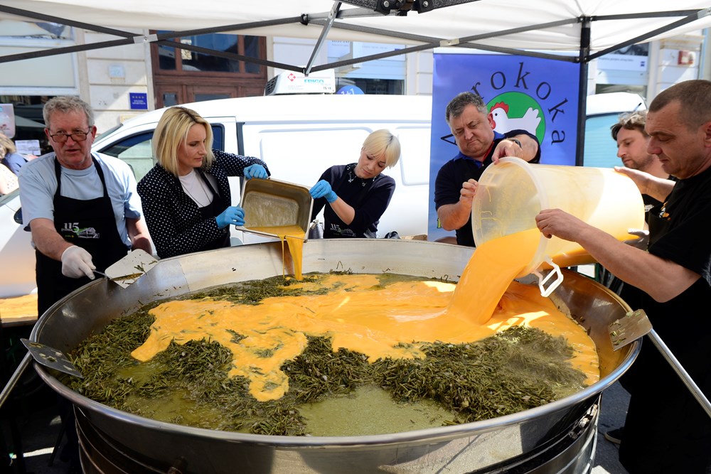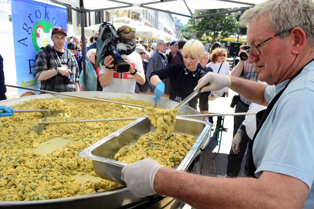 -Za savršenu fritaju, pogotovo kada se radi u ovako velikoj padeli, najvažnije je na vrijeme ugasiti vatru. Lako je doma napraviti fritaju s četiri ili pet jaja ali za velike porcije potrebno je iskustvo, rekao je Žižo kojem je desna ruka bio Gianni Krizman, a u pripremi su mu pomagali i dogradonačelnica Elena Puh Belci, direktor pulske Tržnice Renato Perc te Gastro tim Rock Cafea.