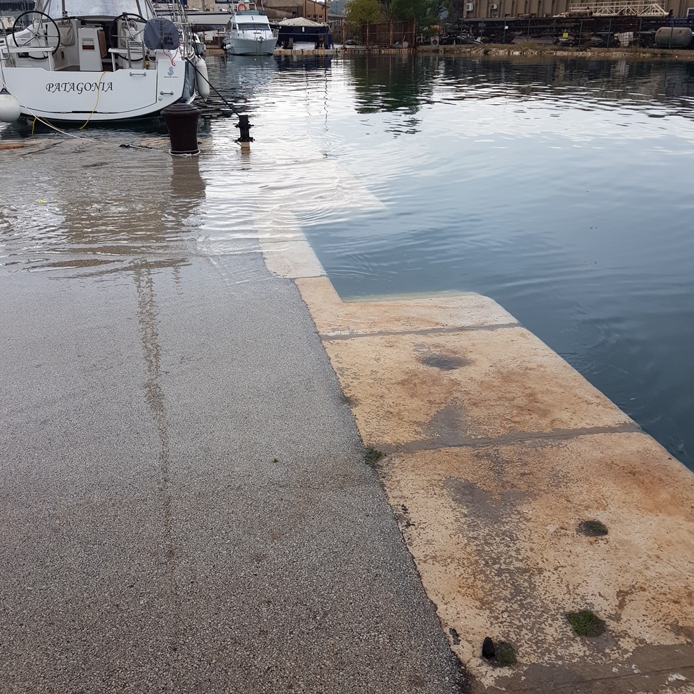 Naš čitatelj Viktor Lazarić nam je poslao fotografije snimljene jutros oko 9 sati u Luci Pula. More se toliko podignulo da plovila plutaju iznad razine obale.