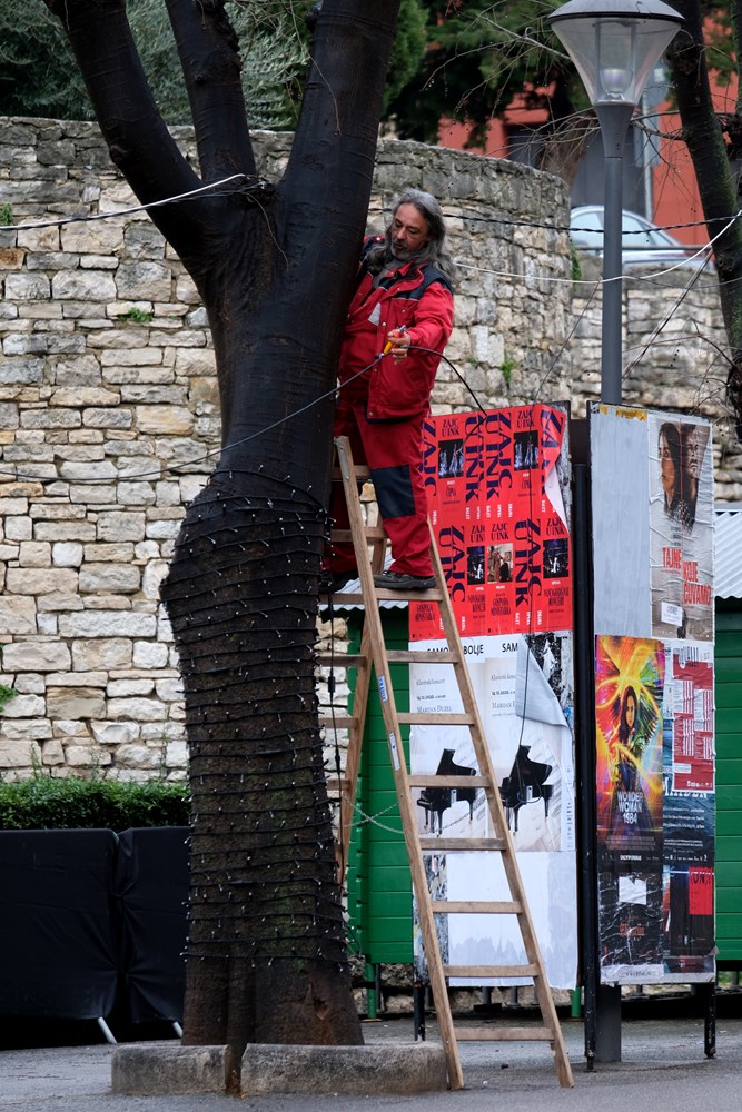 Po običaju, do Nove godine po julijanskom kalendaru, koja se slavi 13. siječnja, ostat će velika digitalna jelka na Portarati, jelka kod Gradske palače i svi drugi ukrasi po gradu, kaže nam Gordana Restović, direktorica javne ustanove Pula Film Festival, koja je zadužena upravo za ukrašavanje Giardina i Portarate.