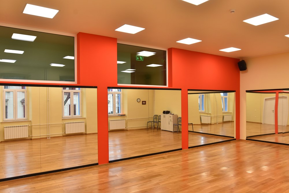 U prizemlju desno obnovljena je Baletna dvorana Slavice Šenk, nazvana po priznatoj plesnoj pedagoginji koja je ovdje radila.