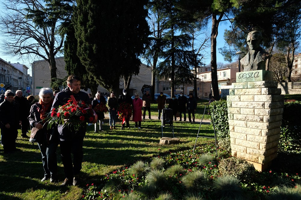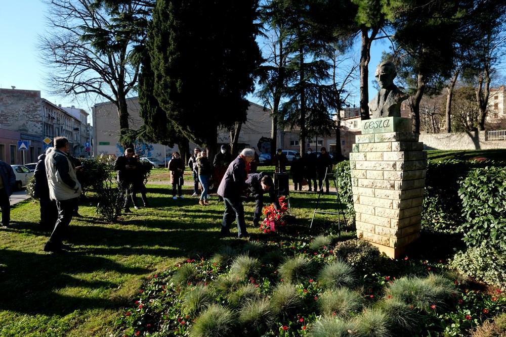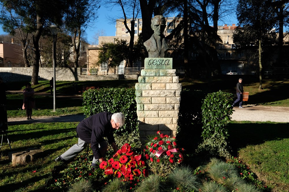 Ispred biste jednoga od najvećih svjetskih izumitelja svih vremena, Nikole Tesle, jutros je u Huguesovom parku u Puli upriličeno već tradicionalno polaganje vijenaca u spomen na tog velikog znanstvenika.