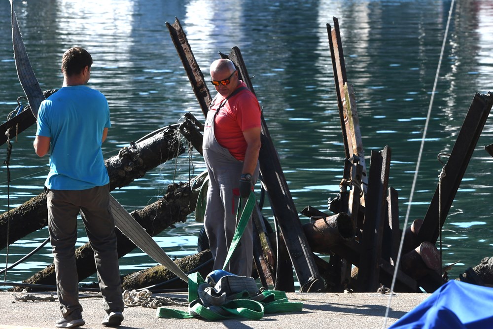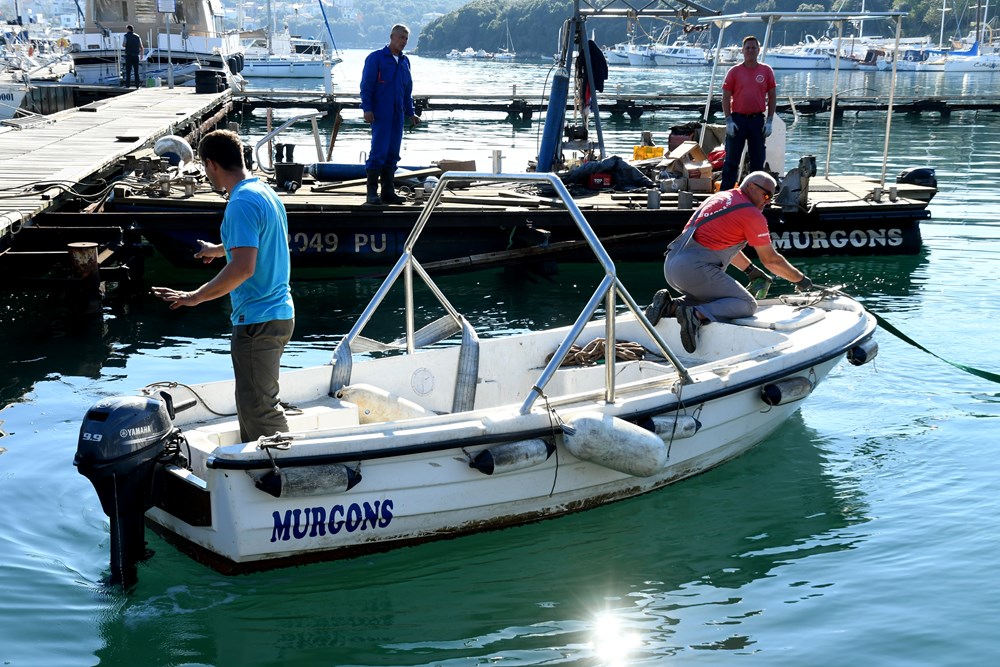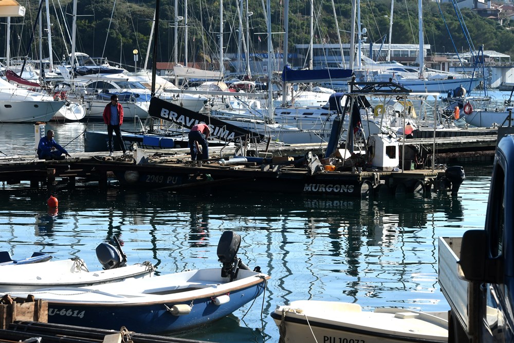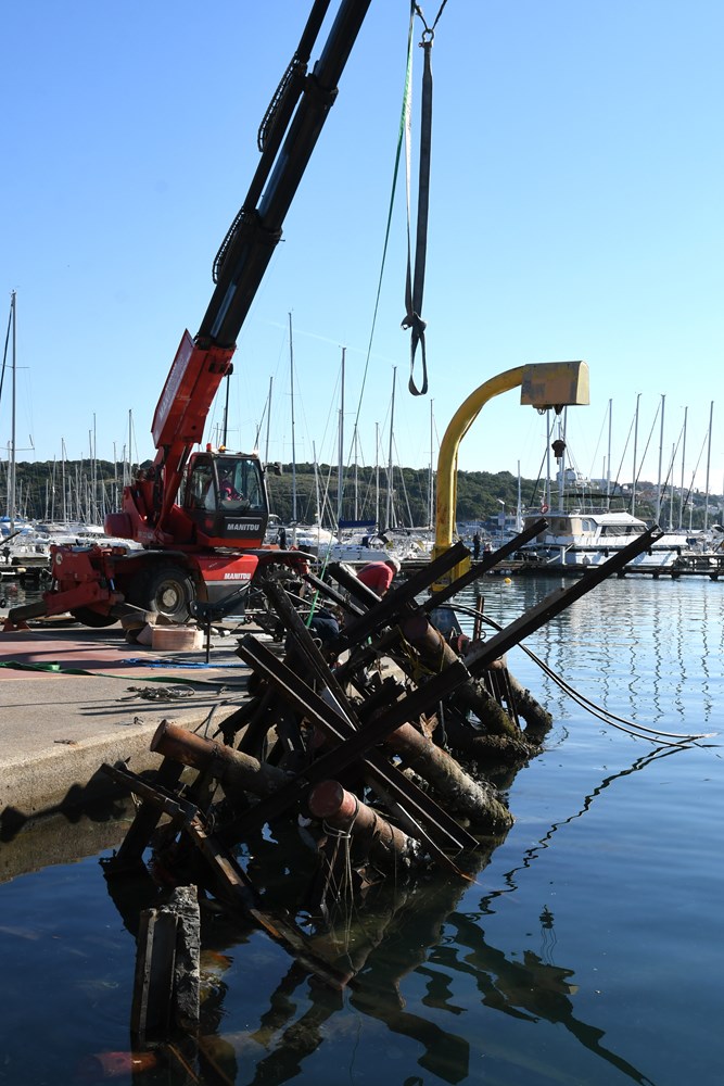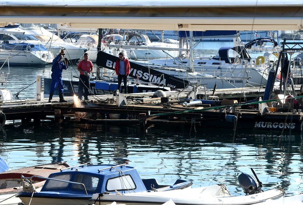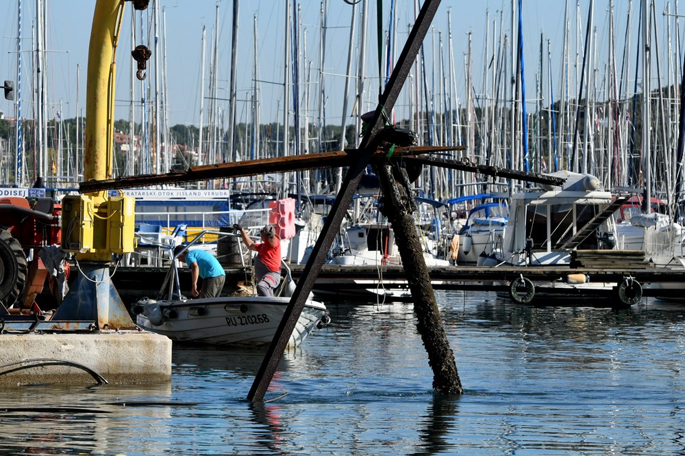 Prije uklanjanja odspojili smo struju i vodu, sve će biti gotovo do konca studenog, kaže on, te dodaje da na morskom dnu, izuzev mulja, nije pronađeno ništa zanimljivo. Nije bilo nikakvog smeća budući da se lučica redovito čisti jednom godišnje.
