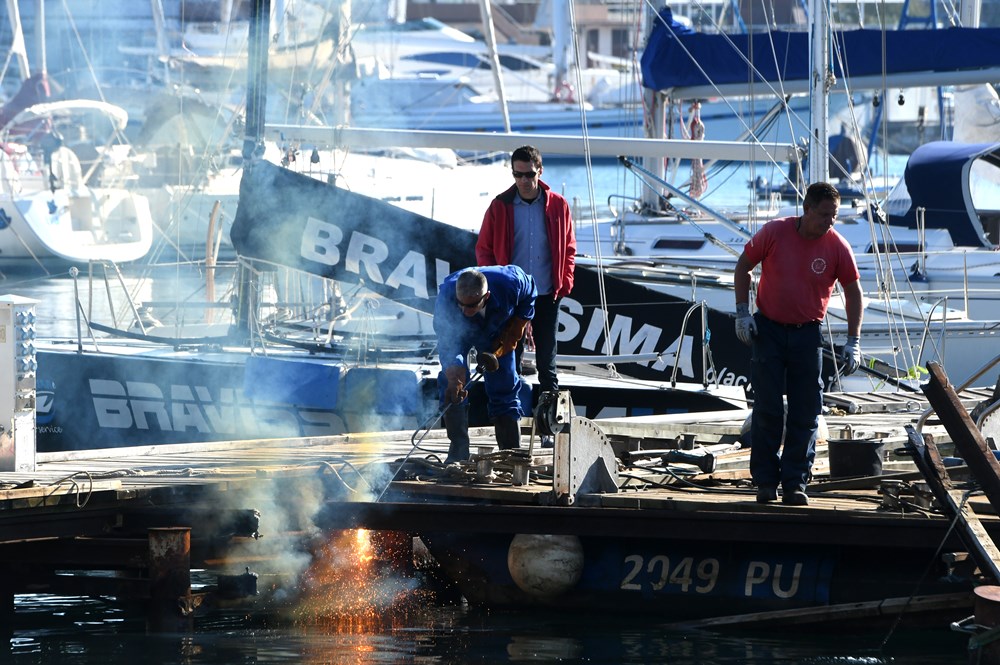 "Sve ide po planu", kaže nam Sandro Biletić, voditelj Bunarine, te odmah sipa brojke. Čitav mol broj sedam, računajući i bočne "krakove", dug je 267 metara. Paralelno s rušenjem stižu i novi pontoni koji plutaju zahvaljujući činjenici što su ispunjeni stiroporom. Svaki dan, objašnjava Biletić, stižu dva pontona, a izrađuje ih u Zadru tvrtka Marinetek Adriatic. Dugi su 9 i 12 metara, a prednost u odnosu na fiksni mol je u tome što se gibaju zajedno s brodom gore - dolje, što omogućuje korisnicima sigurniji ulazak i izlazak s broda, objašnjava Biletić.