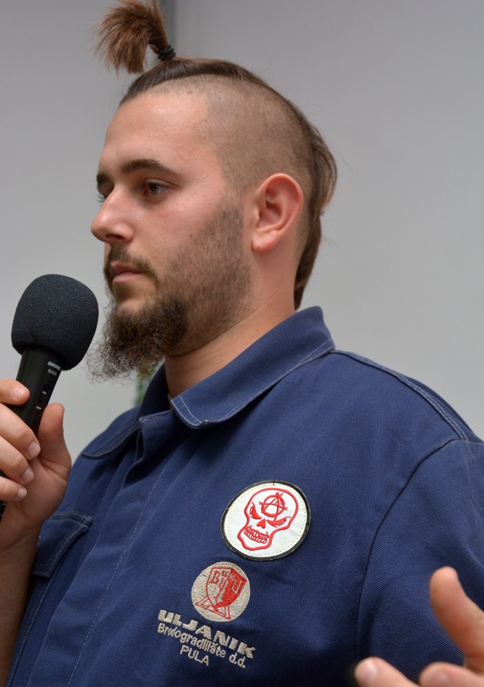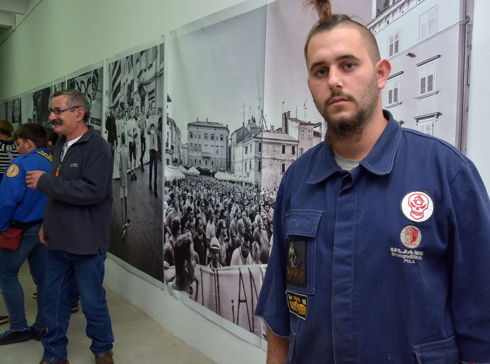 Njegova poruka se, izborom selektora, našla među izlošcima multimedijalne izložbe "Uljanik u Puli!" koja tematizira deset dana štrajka radnika Uljanika koncem kolovoza, a otvorena je večeras u Dnevnom boravku Rojca. Na jednoj od najvećih izloženih fotografija, radnik Uljanika na Trgu Portarata drži natpis na kojem je prekrižen IDS.