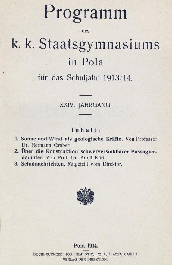 Na mrežnim stranicama obližnje Sveučilišne knjižnice u Puli priloženo je mnogo digitaliziranog materijala iz razdoblja Austro-Ugarske o kojemu jako uzak broj ljudi zna i još manji uzorak njih proučava. Jedan tip takve dokumentacije jesu godišnjaci c. i kr. Državne gimnazije u Puli na njemačkom jeziku, i to od 1891. zaključno sa školskom godinom 1913./14., kada je njezin ravnatelj bio prof. Johann Pupp.