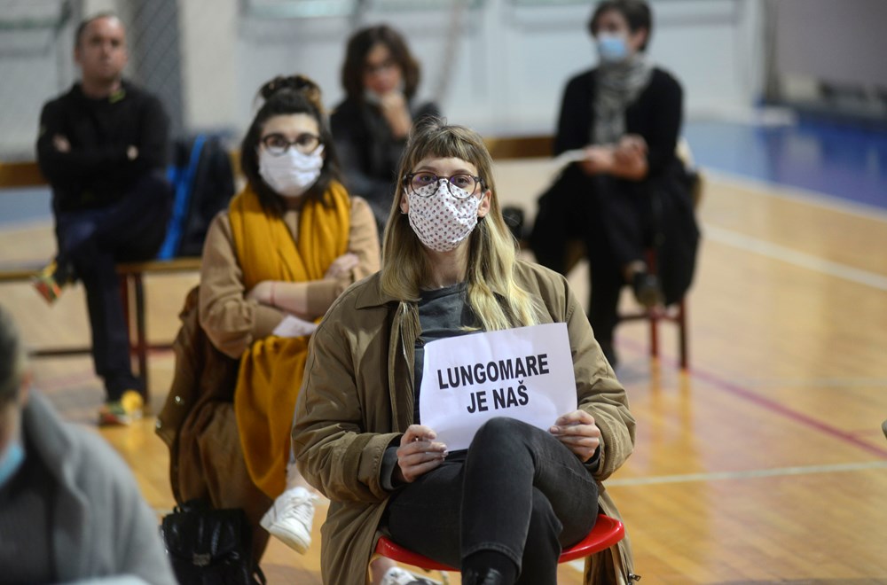 Pročelnica Ingrid Bulian pokušavala je argumentirano odgovoriti na brojna provokativna pitanja građanima, a među govornicima su se između ostalih našli Aleksej Orel, Vlado Šegon, Željko Marković, Dragan Stokić, Stanislav Peharec, tajnik NK-a Uljanik… a i grupa djece, gdje je jedan dječak upitao "Zašto sječete stabla, kad na televiziji govore "Budite odgovorni""?