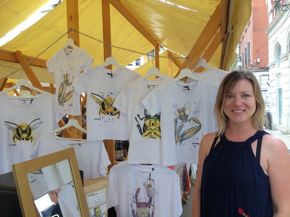 Osim bučinog ulja, meda, nadaleko poznatog varaždinskog zelja, ručno rađene keramike i licitarskih srca posjetitelji su na štandovima mogli vidjeti i kolekciju mlade varaždinske dizajnerice Melite Kukec. Pod brandom "Kookabee" predstavila je Puljanima tri svoje modne kolekcije - haljine s cvjetnim aplikacijama, haljine s originalnim printovima motiva varaždinskih prozora te, doista zanimljive i originalne, majice s motivima kukaca. Kako nam je navela Melita obrt postoji već pet godina, no ona se modom bavi otkako je diplomirala, dakle nekih 15-ak godina, a ovo joj je prvi put da je svoje proizvode predstavila na našem poluotoku.