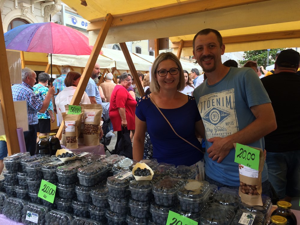 Gužva je bila i za štandom OPG-a Ružić iz Ludbrega koji su nudili svježe borovnice, sok od aronije i domaće lješnjake. Vlasnica Kristina Ružić ispričala nam je da se proizvodnjom uspješno bave već sedam godina te imaju zasađen jedan hektar borovnica i 3,5 hektara lješnjaka, a bave se ekološkom proizvodnjom za koju trenutno čekaju certifikat.