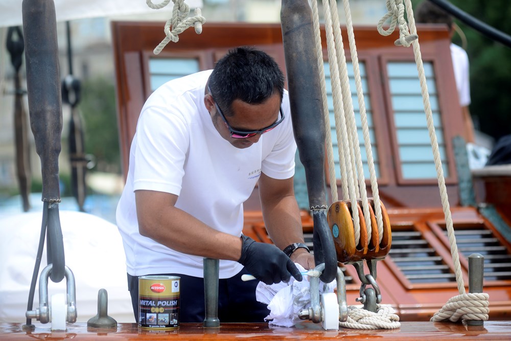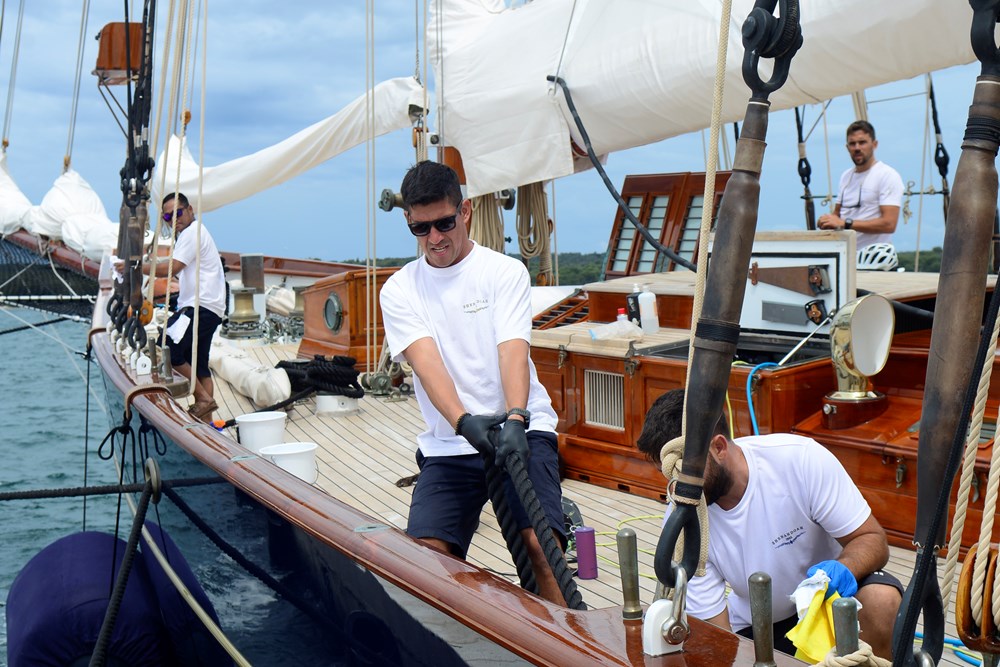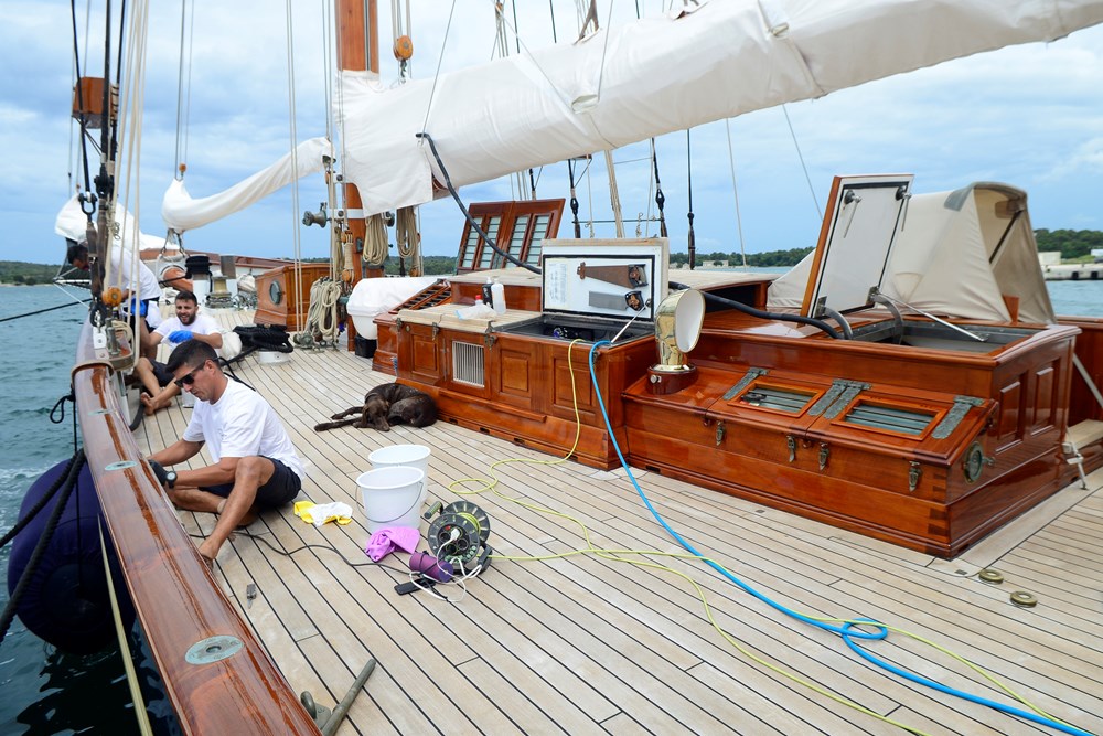 Jedno je sigurno, aktualni vlasnik stremi ne samo maksimalnoj privatnosti, nego i visokoj razini perfekcionizma. Svjedočili su tome i svi znatiželjnici koji su jučer ujutro stiješnjeni na gatu pokušali od pričljive posade saznati čim više o povijesti i značajkama broda. Jedrenjak se, naime, glanca kao u kakvom filmu - četkicom za zube. Svaki detalj, svaki kutak i svaki pedalj jahte riba se s posebnom pedantnošću.